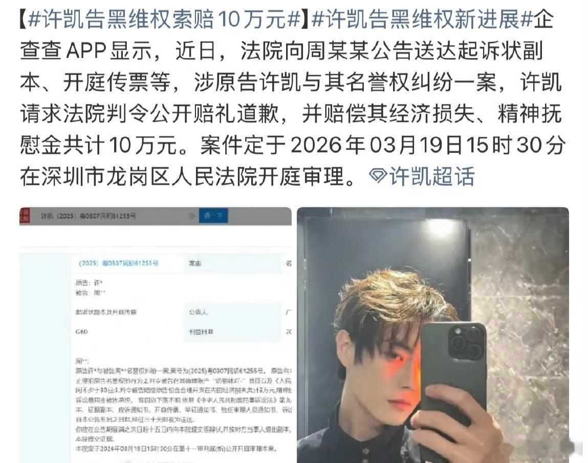 许凯告嘿维权新进展,支持凯凯维权