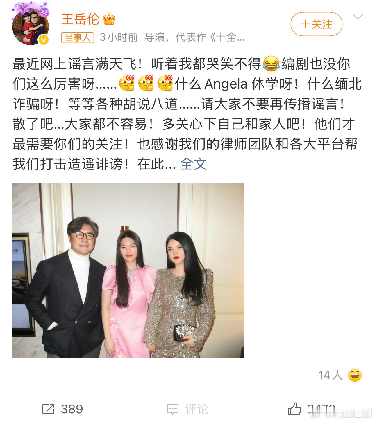 王岳伦发文辟谣,但他的评论区好像不能评论…