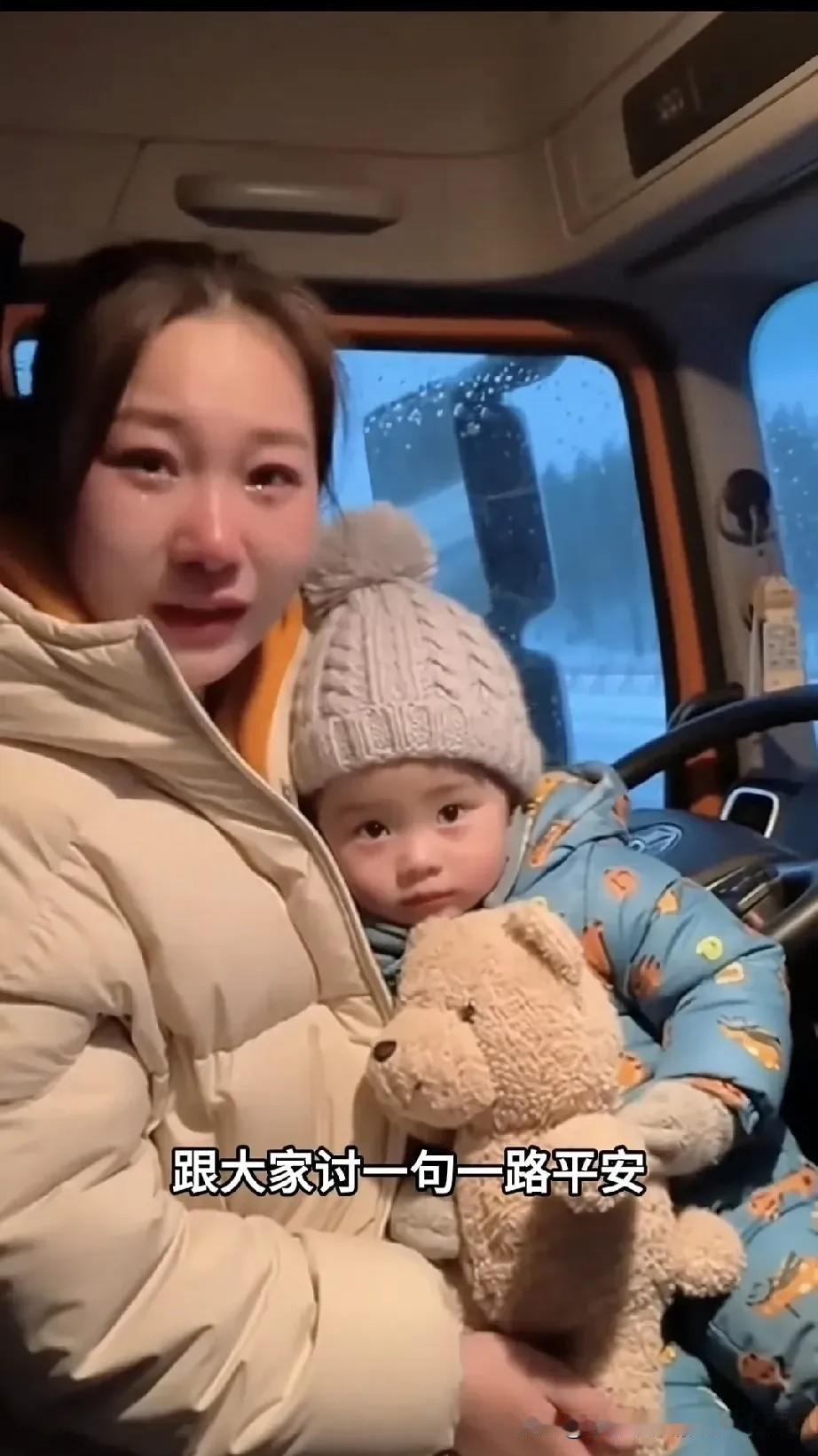 这是从河北拉货的单亲妈妈,这个冬天就和孩子相依为伴。厚脸想替这位单亲母亲和小家伙要一个一路平安,希望这一路有你们的祝福。 看到这位单亲妈妈,首先祝你一路平安,大家都会越来越好的不要哭,你是孩子的榜样,你是最好的最棒的,加油啊 孩子太小,别要求太高,吃饱穿暖,够养活你们俩的工资就可以,等孩子大点再考虑挣钱多少,这个开大车真的是不安全,别跑了,祝你一路平安,以后顺风顺水 谁愿意大冬天带着奶娃跑长途啊!方向盘上的手冻得发红,怀里的孩子裹着厚厚的棉袄,可能还在睡梦中咂嘴,她却要时刻盯着前方的路,不敢有半分松懈。 跑大车本就是高危行当,昼夜颠倒、风雨无阻,连壮汉都得咬牙扛,何况是带着孩子的单亲妈妈?服务区的热水可能不够热,泡一碗面的功夫都得盯着孩子,生怕一转眼小家伙爬丢。 不是她不怕危险,而是身后的孩子,让她没有退路——放下方向盘,可能连孩子的奶粉钱都凑不齐;握紧方向盘,至少能给孩子一个安稳的温饱。网友劝她别跑了,可这话里的无奈,只有她自己懂。 我见过凌晨三点的服务区,有妈妈抱着孩子在驾驶室里啃面包,孩子哭闹着要妈妈抱,她只能一手揉着孩子的背,一手快速扒拉几口饭,眼睛还得瞟着油表和路况。那种心酸,不是一句“别跑了”就能解决的。 她不是不想找份安稳的工作,可单亲妈妈带着幼崽,能兼顾照顾孩子又能挣到钱的活儿,太少太少。开大车虽然苦,但收入相对稳定,时间也能自己把控,至少能把孩子带在身边,不用忍受分离之苦。 网友的祝福里,藏着最朴素的善意——有人说想给她寄暖宝宝,有人说路过她的路线愿意提供帮助,还有人提醒她哪些路段不好走,注意避让。这些细碎的温暖,就像冬夜里的微光,照亮她的征途。 可光有祝福不够啊!单亲妈妈的困境,从来不是一句“加油”就能化解的。就业市场对单亲妈妈的包容度不够,育儿支持体系还不够完善,让她不得不选择最辛苦、最危险的方式谋生。 她是孩子的榜样,这话没错。她用自己的肩膀扛起了一个家,用坚韧告诉孩子什么是责任。但我们更该思考,如何让这样的妈妈不用再冒着生命危险讨生活,如何让她们在兼顾育儿的同时,能拥有更安全、更体面的工作。 这个冬天很冷,但人心很暖。希望这一路真的能如大家所愿,平安顺遂;也希望未来有一天,所有单亲妈妈都不用再如此辛苦,能在温暖的港湾里,陪着孩子慢慢长大。 各位读者你们怎么看?欢迎在评论区讨论。