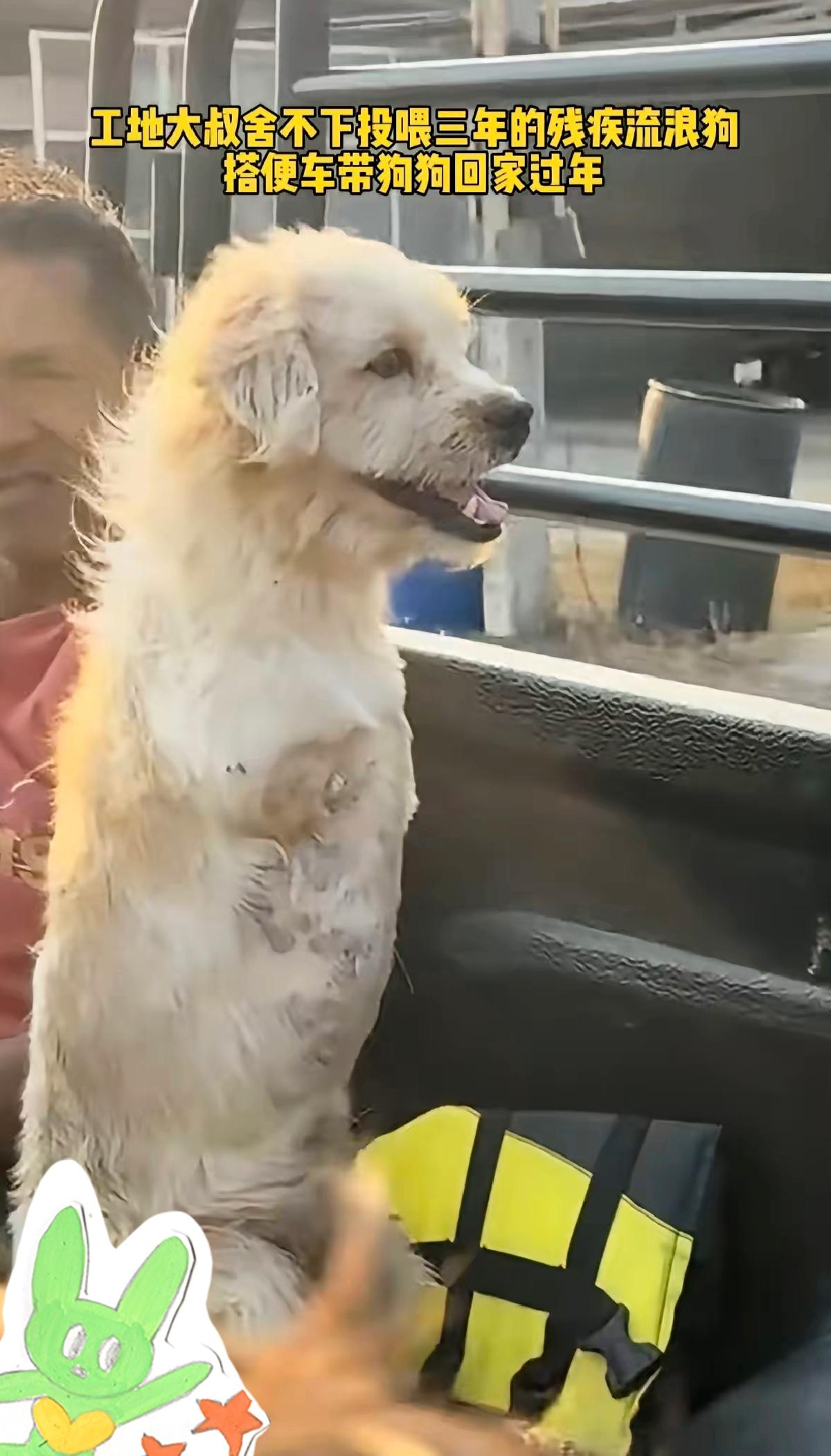 这一整年的辛苦,都被这个带狗回家的决定暖透了! 工地上的暖心一幕,看哭无数人!在外打工的男子,过年返乡竟带上了那只被他投喂三年的残疾流浪狗。 三年前他救下了这只生病的小家伙,从此一人一狗相依相伴,狗狗用陪伴消解他的疲惫,他用投喂给了狗狗一个家。临近过年,狗狗整日耷拉着脑袋,生怕被独自留在工地。男子一句“豆豆,跟我回家过年”,瞬间让狗狗欢喜得飞奔而来。 有人说带狗赶路麻烦,可在他眼里,狗狗早已不是一只流浪动物,而是漂泊岁月里的家人。所谓的温暖,从来不是单方面的给予,而是双向的救赎。 你身边有没有这样人与动物双向奔赴的暖心故事?流浪狗 打工人的返乡记