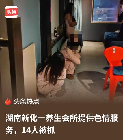新化一家养生会所, 说按摩结果抓了14个人, 警察到底查到了啥。 1月15号晚上,新化县上渡街道一家酒店六楼的“养生会所”被警方查了。 不是小打小闹,是治安大队带着梅苑派出所一起上的,现场抓了14个。 老板姓杨,被刑事拘留了,罪名是容留他人卖淫。 其他13个,有男有女,名字通报里写了周某、蔡某,都按卖淫嫖娼行政拘留。 没写“没干成”“刚脱衣”,就明明白白写了违法行为。 这种地方,名字叫养生,监控装得隐蔽,前台说话带暗语,其实早被盯上了。 警察不是突然冲进去,是查了线索、摸排好几天,才收网的。 文旅局和市监局也在管这类店,光今年1月,新化就吊销过违规网吧许可,也发了新的电竞馆执照。 管得严,不是不让开,是得按规矩来。 卖淫嫖娼,谈好价、进房间、脱衣服,就构成违法了,不用真干完。 这在法律条文里写得清清楚楚。 养生不是假名,更不是挡箭牌。 警察查的是违法,不是查养生。