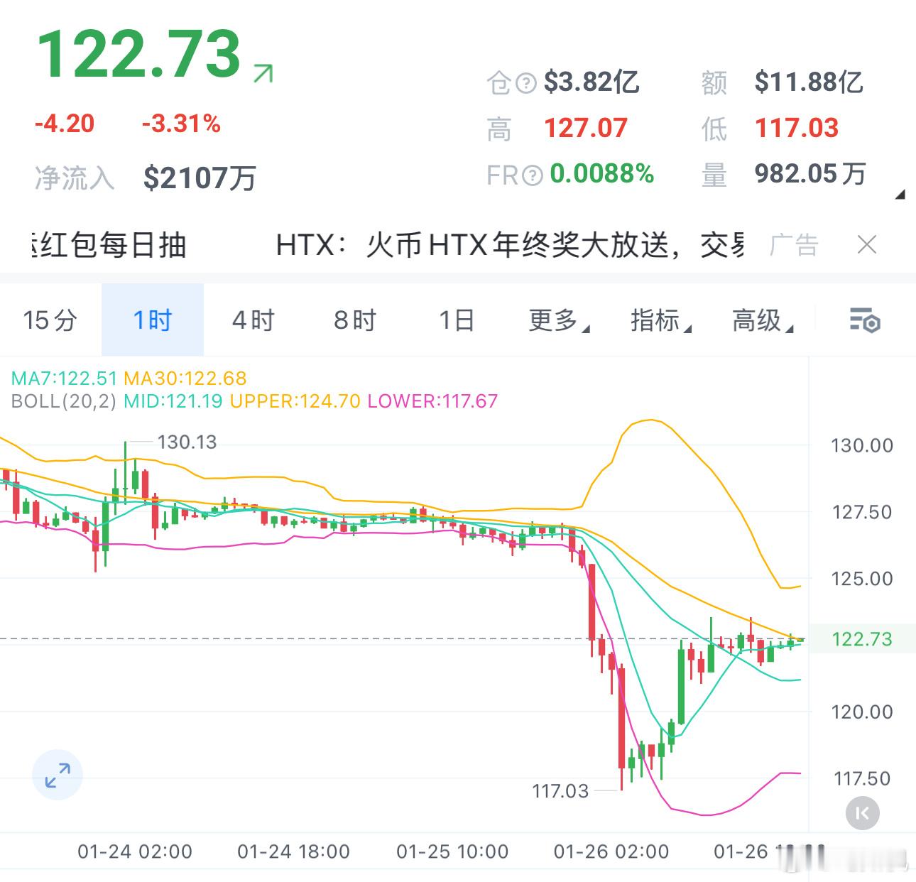 SOL短线哆布局120-122,也可以多,上看130。