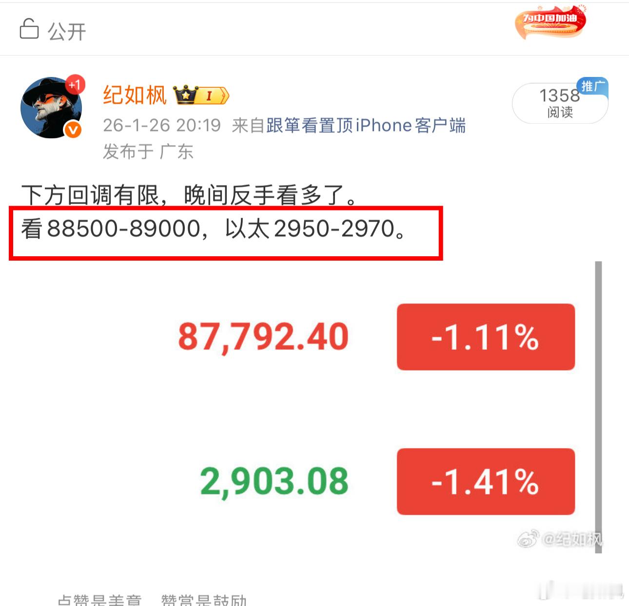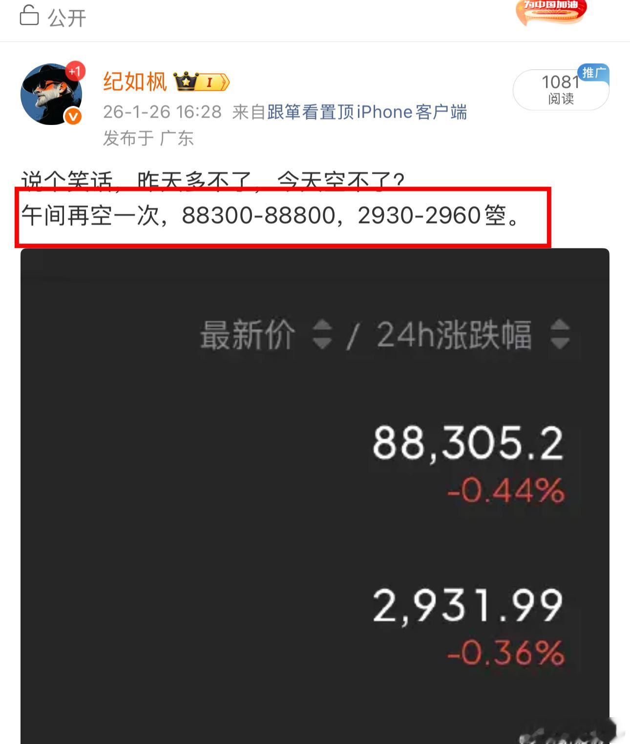 直接干到88800附近了,以太同步2948。下午老纪给出88300附近空,以太同
