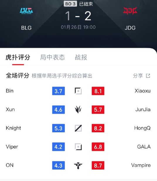 我们LPL有自己的K博士,JDG的辅助一手巴德完全把BLG克制到死!而且这几把看下来,赢得局基本都是左手带爆中下的,一但中路蔫菜甚至这两把都被反压,那基本blg就G了。更别说BLG优势不管领先4k还是7k还是1w都有可能送了。所以WBG到底怎么赢的JDG??BLG对战JDGJDG战胜BLG英雄联盟