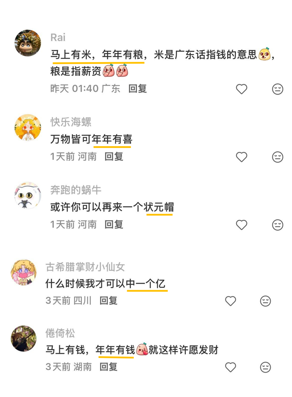 余额宝谐音梗祝福被网友玩坏了搞钱人DNA狠狠动了,简直是一整个“赛博财神庙”,大家的祝福真的有具体到银行卡小数点后两位,那我也来:我李弘毅实名㊗️各位马上有钱,年年有「分红」!👇上ZFB搜【年年有余】,参与活动每日10:00、16:00抢兑黄金挂件,攒心愿还有机会抽明星攒钱加油团限定周边~今年不整虚的,许愿🙏我们接住的每一个祝福,都能精准变现!