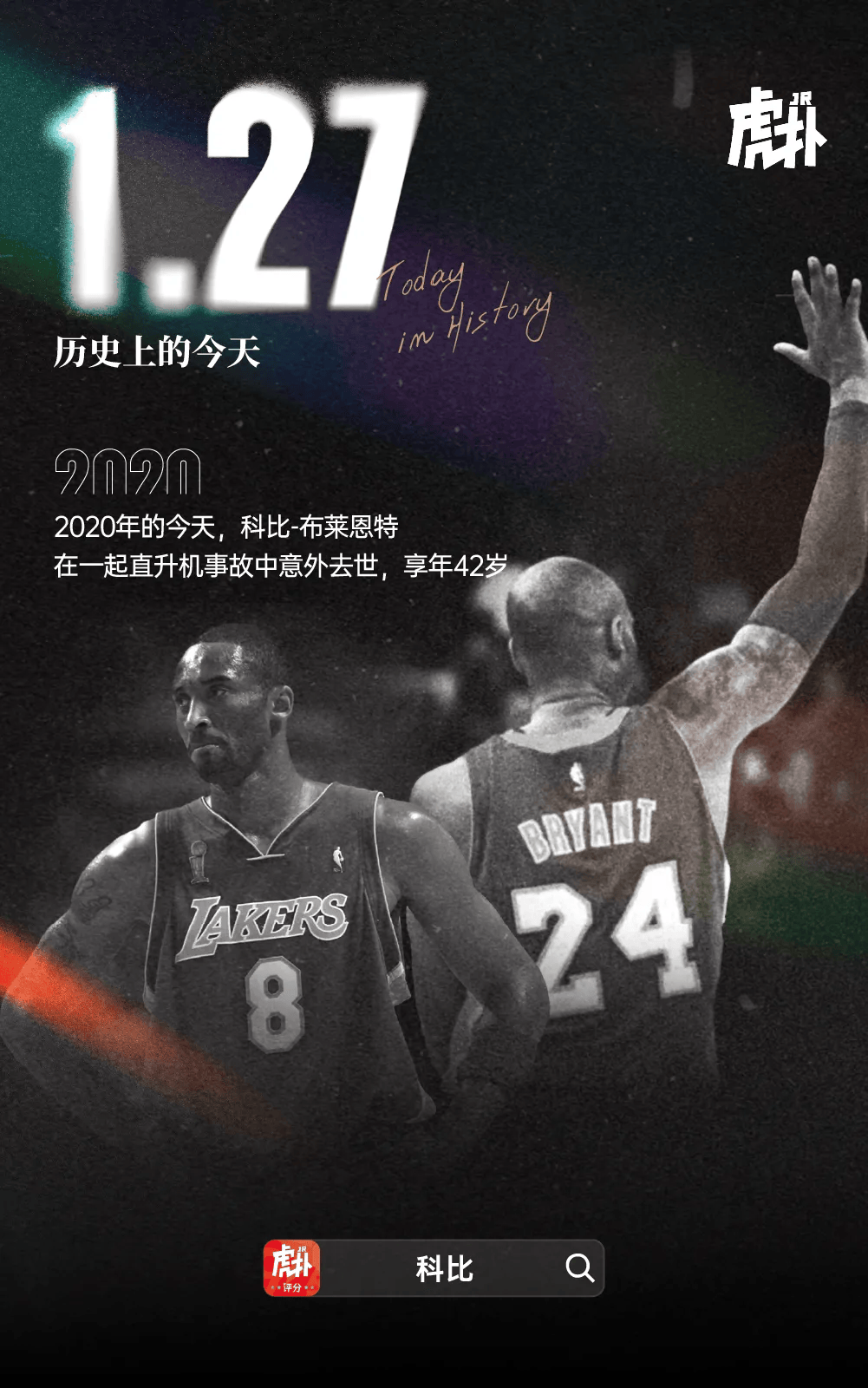 2020年的今日(北京时间1月27日、美国当地时间1月26日),湖人传奇球星科比-布莱恩特在一起直升机事故中意外离世,享年42岁。