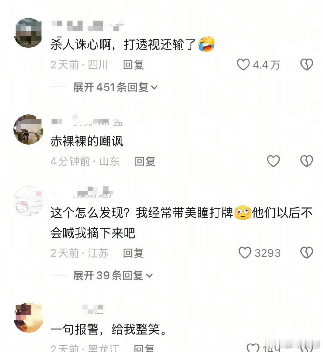 女子打麻将戴特殊隐形眼镜被拆穿游戏里搞透视就算了现实打麻将还搞透视耳边突然想起一句法语:我要验牌!!!