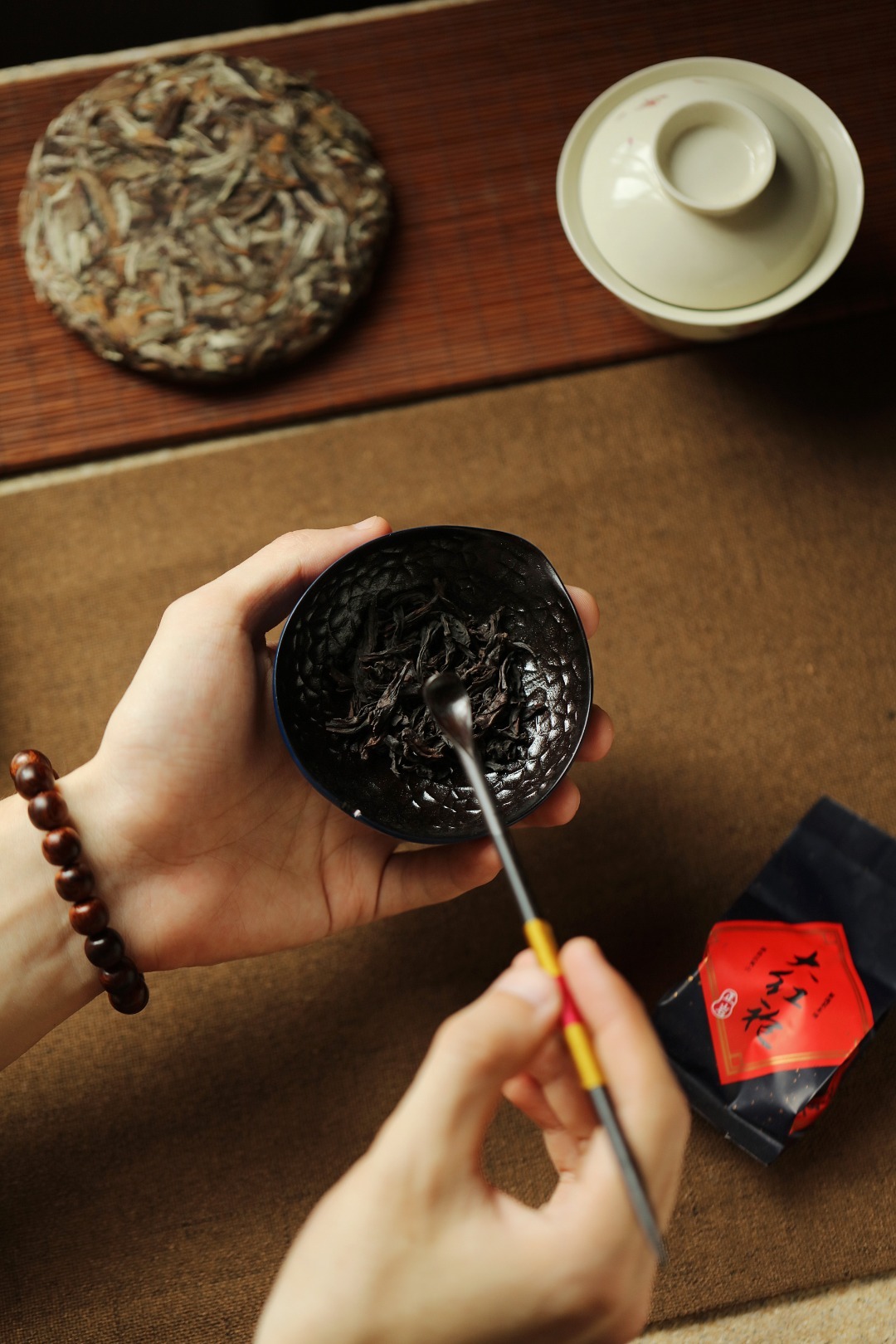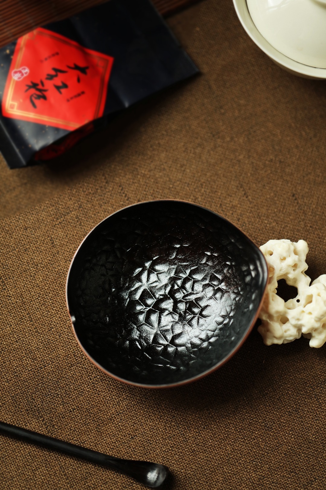 大漆【见安】茶则系列以紫光檀为胎体,将漆色层层髹饰其上;置于茶案之上观赏亦把玩,亦携茶具以作清欢。9.5*9*2.5cm 茶勺长19.8cm 大漆【见安】茶则系列