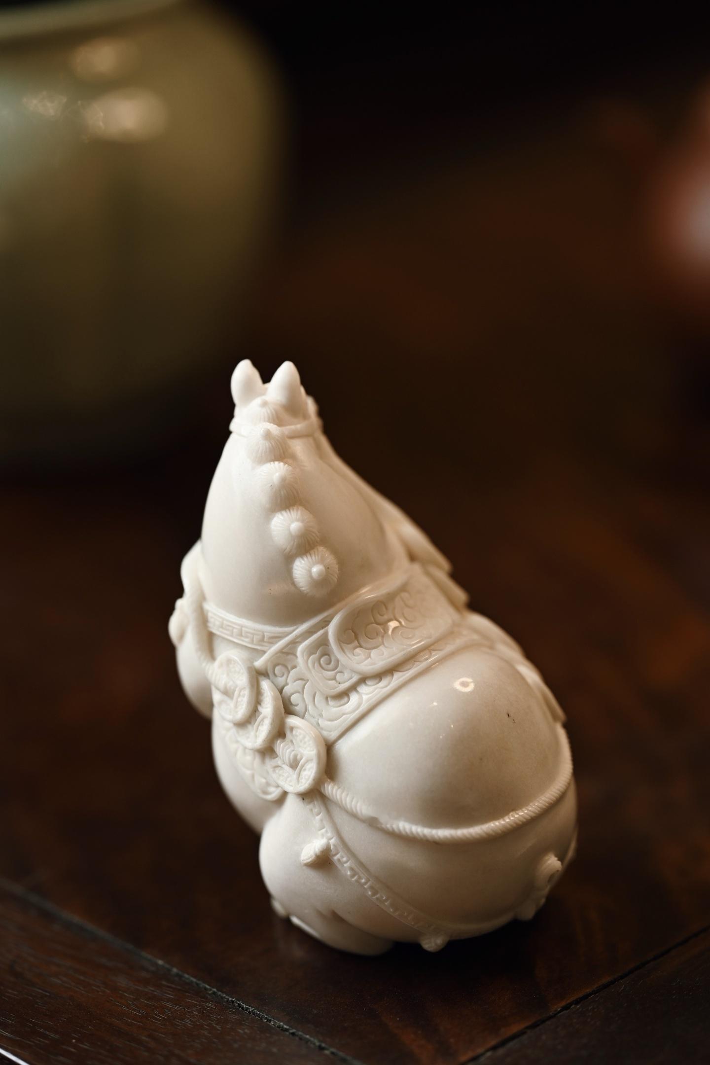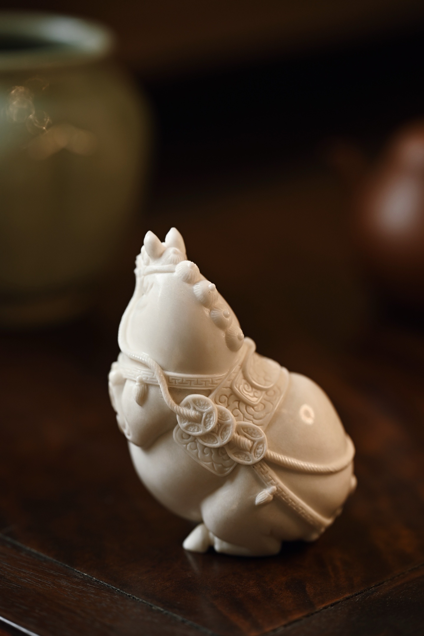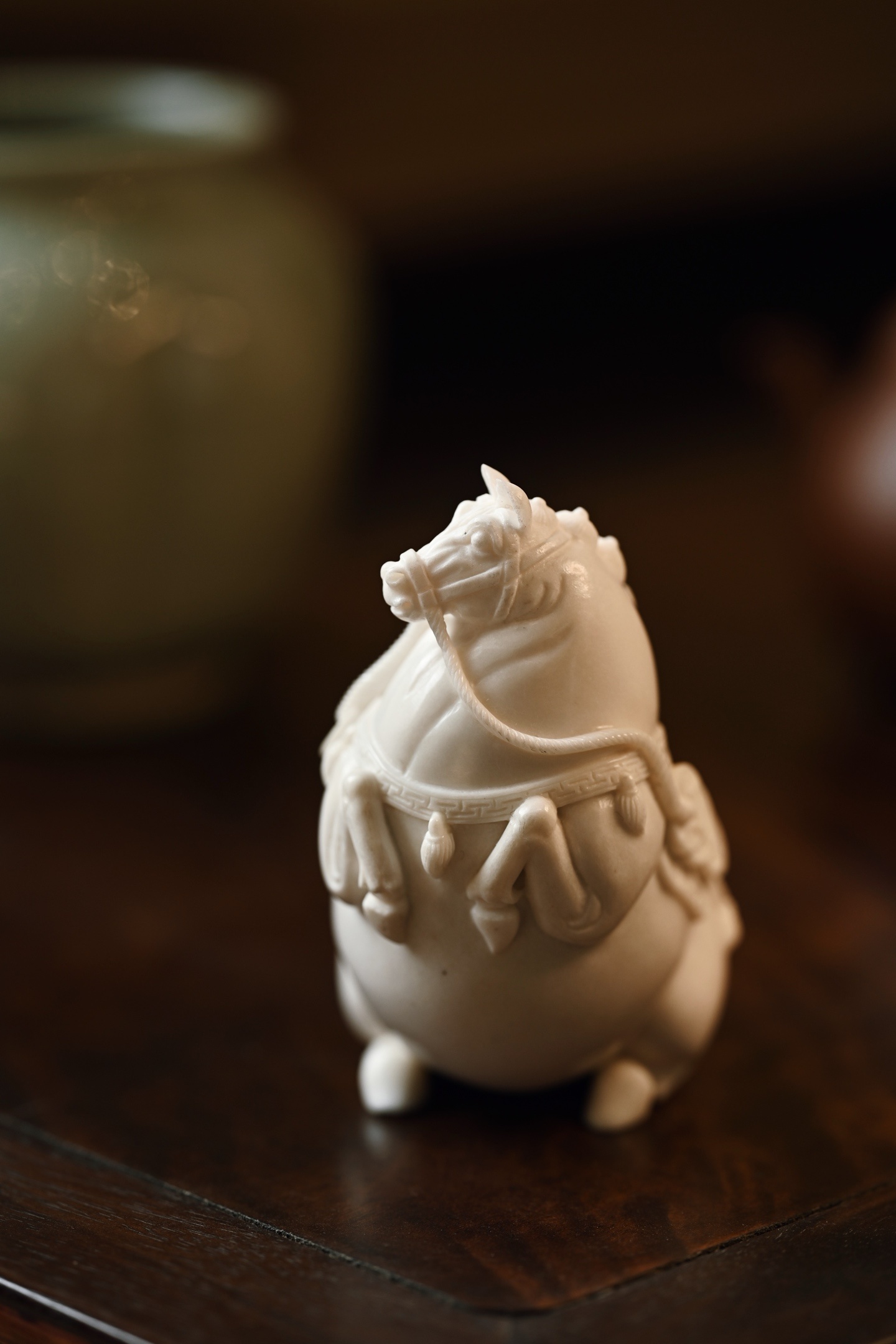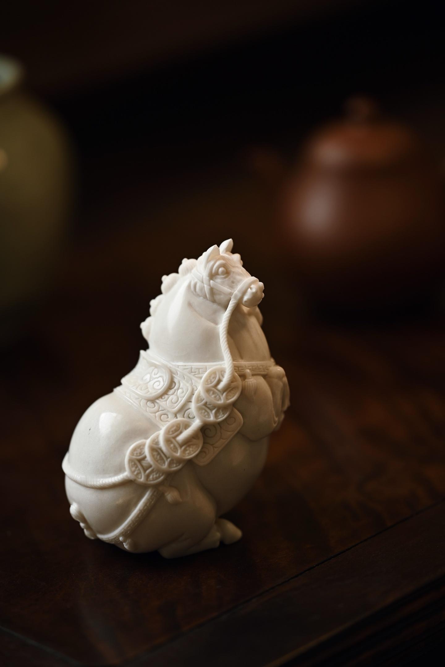 鹿角 | 马上有钱取材质密凝润,圆雕饱满结实,塑形写神颇具气势,骏马立姿,背驼铜钱,立形达意,祝颂“马上有钱”。6.5*4.8*8cm 173g