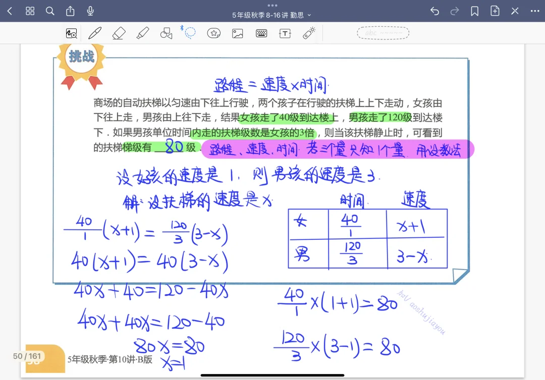 《扶梯与发车问题》小学奥数课堂笔记