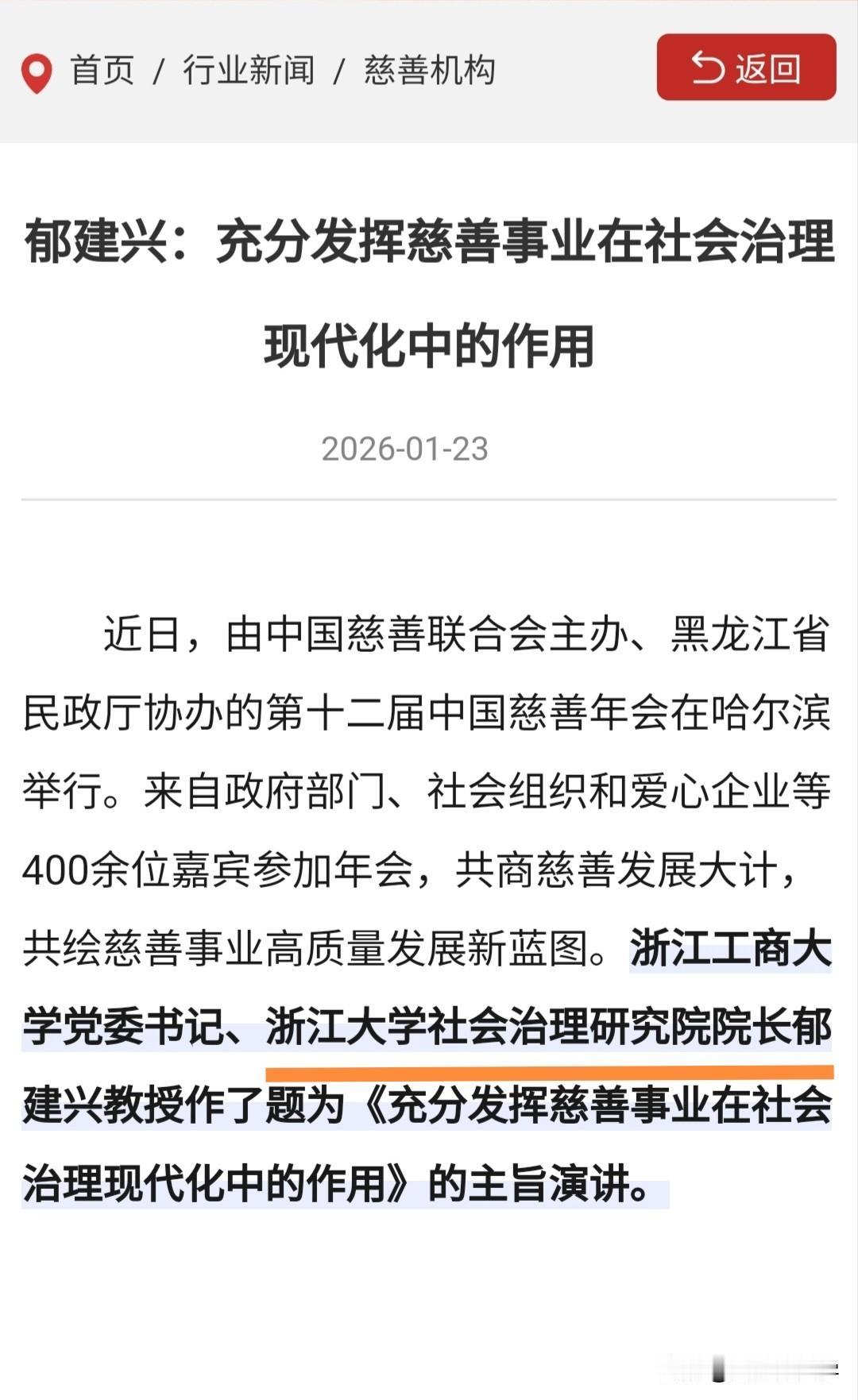 浙江工商大学郁建兴书记已经卸任,他会回归浙江大学吗? 郁建兴是浙江省属高校众多“浙大系”一把手中的一员。 早在2020年7月,没有担任过高校副职的郁建兴,直接从浙江大学公共管理学院院长调任浙江工商大学校长,后来又转任浙江工商大学书记。 到此番卸任,他来到浙江工商大学工作还不到6年,便已经经历了两个一把手岗位。 关键是,郁建兴出生于1967年,还未到退休界限,接下来不知道是另有重任,还是回归浙江大学呢? 值得一提的是,郁建兴虽然来到浙江工商大学工作多年,但他在浙江大学还一直有职务兼任,身兼浙江大学公共管理学院教授、浙江大学社会治理研究院院长至今。 所以他即便离开了浙江工商大学,不管去往哪里任职,浙江大学都是他无法割舍的“家”。