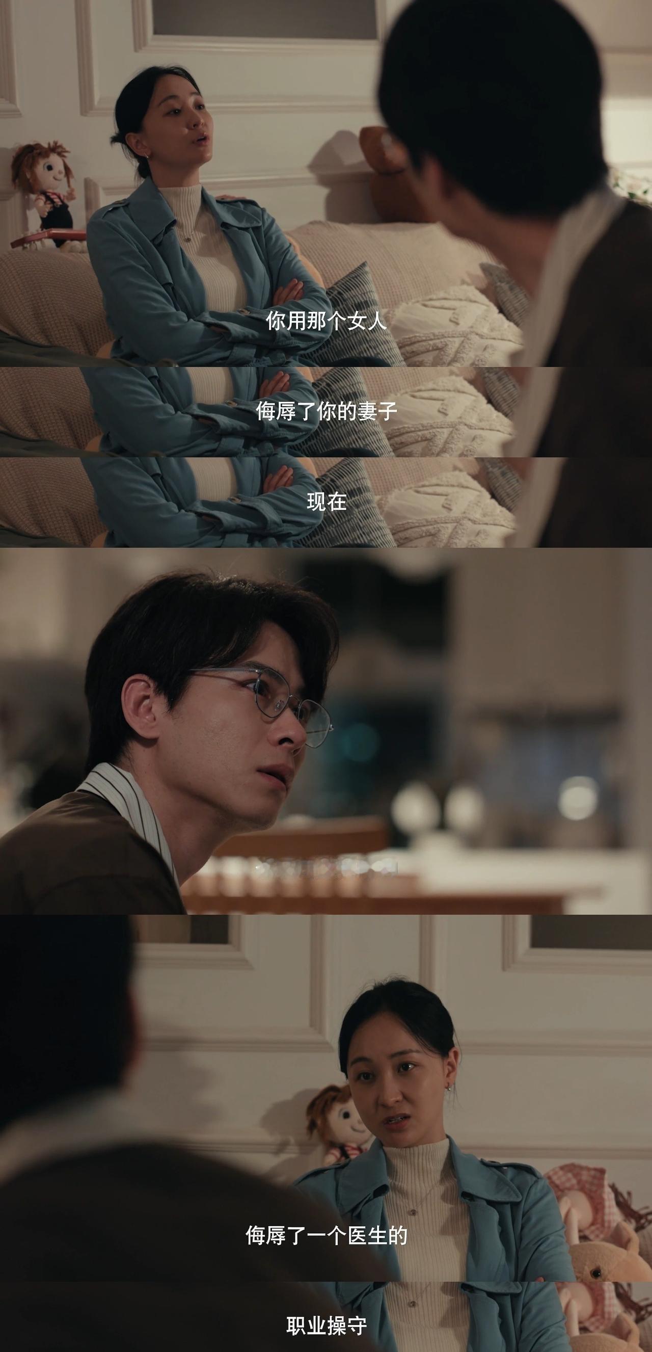 我的评分: 刘曼丽那个案子简直可以说是女性困境群像标本了,秦鸣的自私与懦弱是这场悲剧的导火索,他既隐瞒出轨真相,又为逃避责任刻意拖延刘曼丽的治疗,将刘曼丽推向了无尽的深渊。而白雅晴本来有一个幸福美满的家庭,却因为丈夫的出轨打破了幸福的滤镜。 作为医生,她亲眼目睹丈夫送小三来做手术,却在患者生命面前守住职业操守,坚决拒绝蓄意切除子宫的污蔑。与丈夫对峙时还被秦鸣怀疑自己作为医生的职业操守。作为妻子,在发现无法守住自己家庭幸福之后,果断选择离婚,守住了尊严与底线。两个女性被一个男人一段错位情感裹挟,没有绝对的加害者与受害者,只有被欲望、责任与伤痛困住的灵魂,女性唯有守住内心的清醒与原则,不被他人的错误裹挟,不向现实的泥泞妥协,才能在绝境中挣脱束缚,找到属于自己的生路。