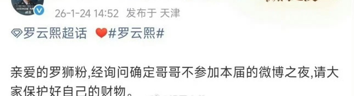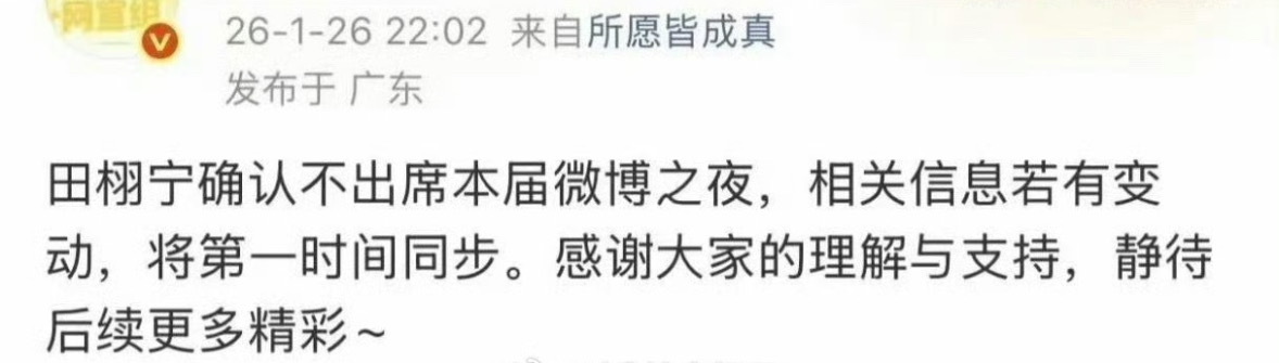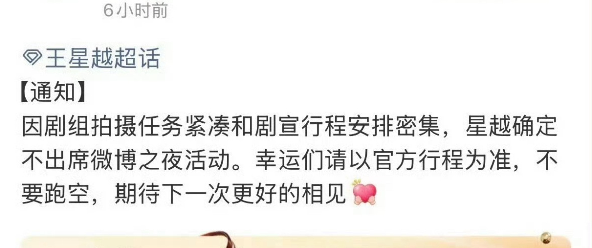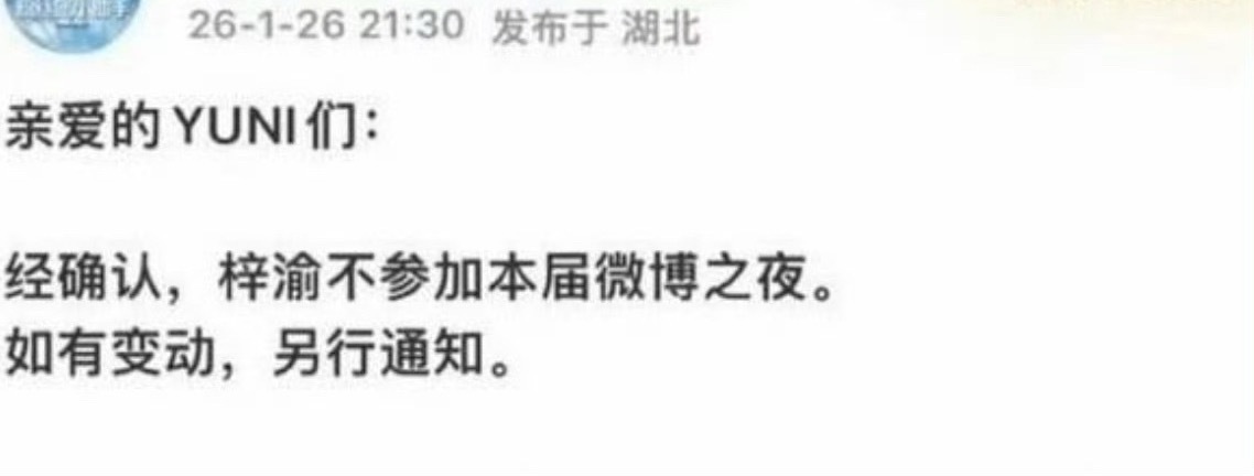 对接已确认不出席微博之夜名单:罗云熙 梓渝 田栩宁 鞠婧祎 王星越 侯明昊