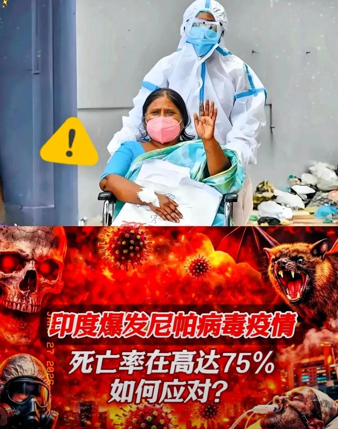 就在刚刚! 医疗圈刚传出来的消息,听得人头皮发麻。印度这次疫情,第一枪竟然是在医院内部打响的。 西孟加拉邦尼帕疫情5例确诊者均为医护,证实病毒院内人传人,近百人被隔离,该病毒致死率达40%-75%,全球无疫苗特效药。 印度基层医院防护物资短缺,医护重复使用防护用品,叠加新冠JN.1变异株持续传播,医疗资源被双重疫情大幅消耗。 世卫将尼帕列为高潜力流行病原体,其潜伏期最长45天,初期症状易与流感混淆,加剧防控难度。 印度医院成为疫情起点,是其公共卫生体系长期薄弱的必然结果,基层防护缺失、医疗资源分配不均的问题,在致命病毒面前被无限放大,而人畜接触增加的外部因素,更让疫情防控的漏洞难以弥