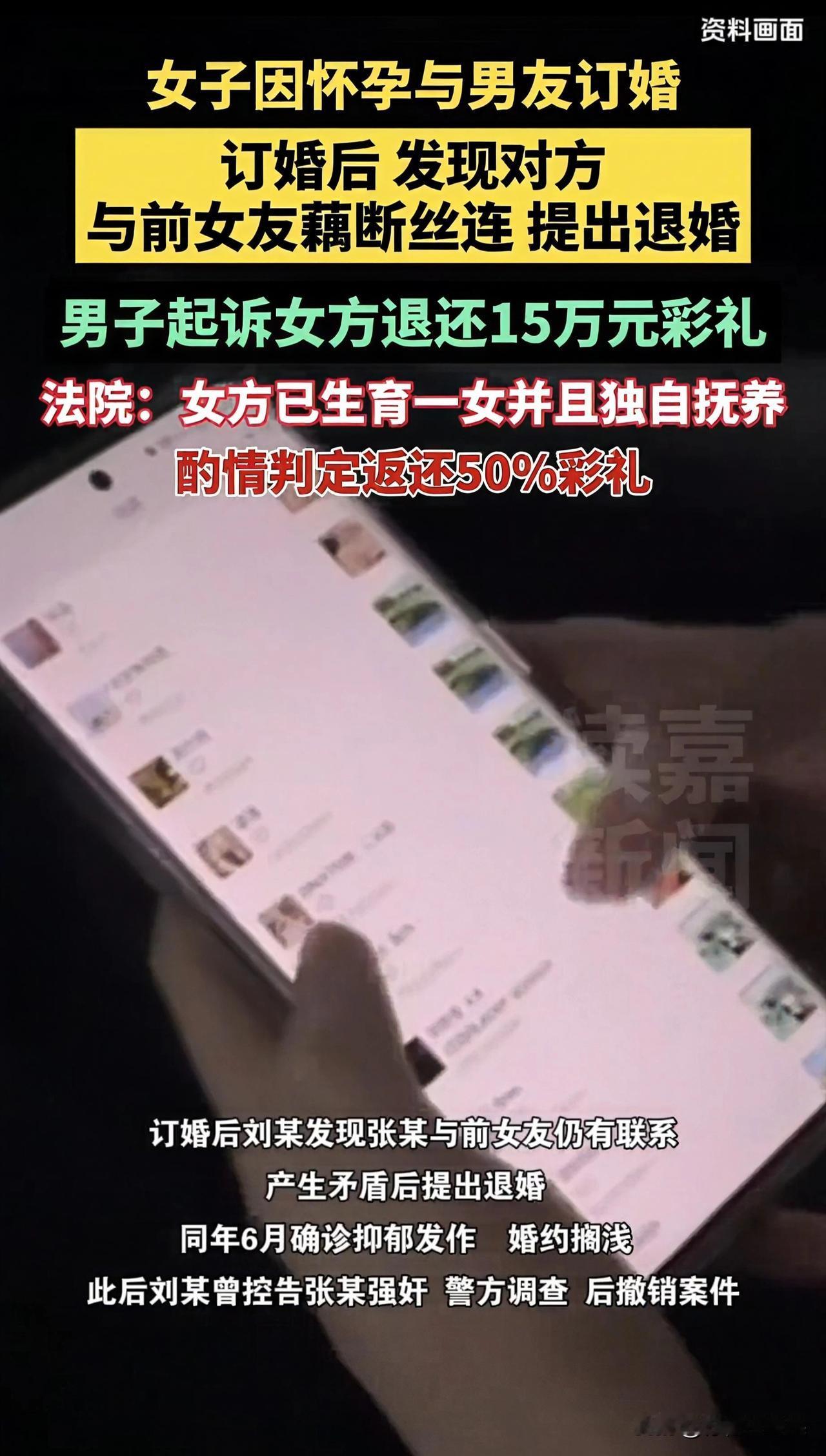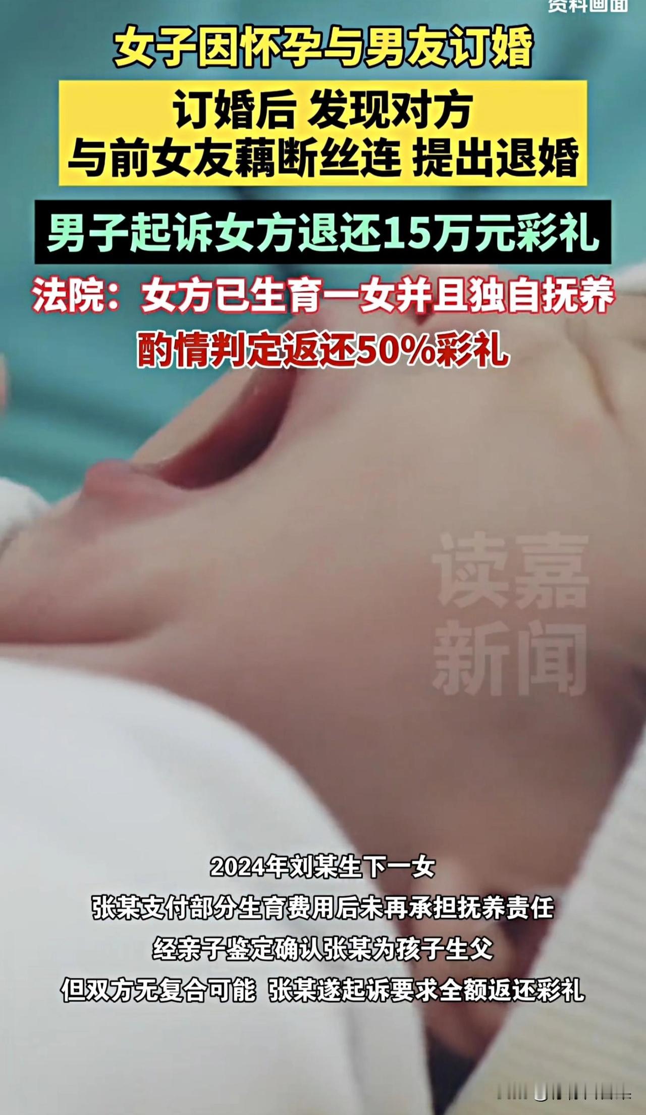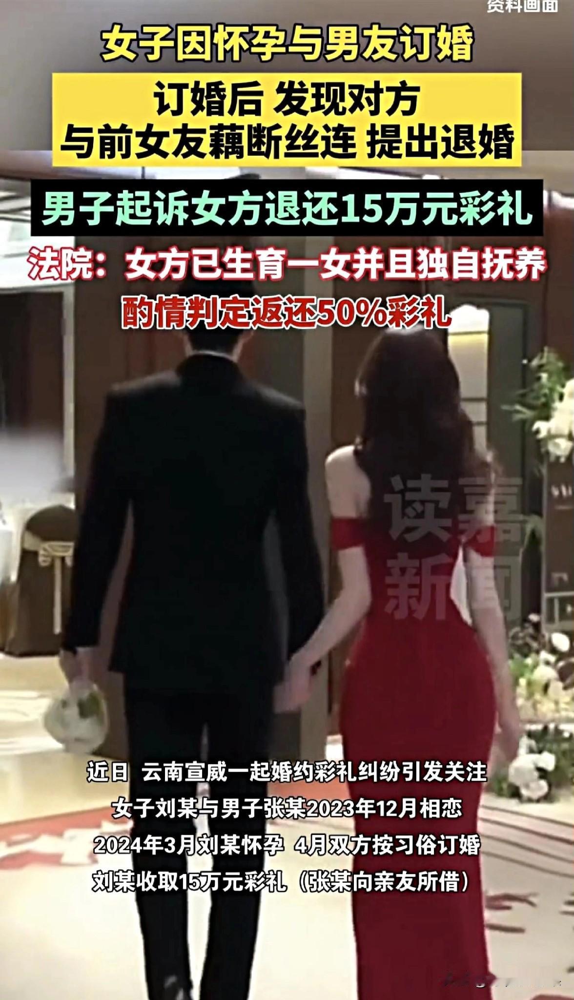 大伙们都来评评理! 云南这男的,让女友怀孕了,欢天喜地订了婚给了15万彩礼。转头就跟前女友勾勾搭搭,当别人是傻子吗? 姑娘也是个狠人,发现不对劲直接提了退婚,生了孩子自己带。结果这男的居然还有脸把人家告上法庭,要求全额返还15万彩礼! 就想问一句:你的脸呢?孩子是你亲生的,你没责任?是你先出轨的,凭啥让女方背锅?当初把姑娘气到告他强奸,这得多绝望啊! 还好法院是清醒的!直接判了:返还一半彩礼(7.5万),而且这男的必须每月给1500块抚养费! 这判决既没让老实人全吃亏,也没让Z男全身而退! 真的奉劝所有女孩:婚前擦亮眼睛,别轻易怀孕!遇到这种没担当的Z男,赶紧脱身!