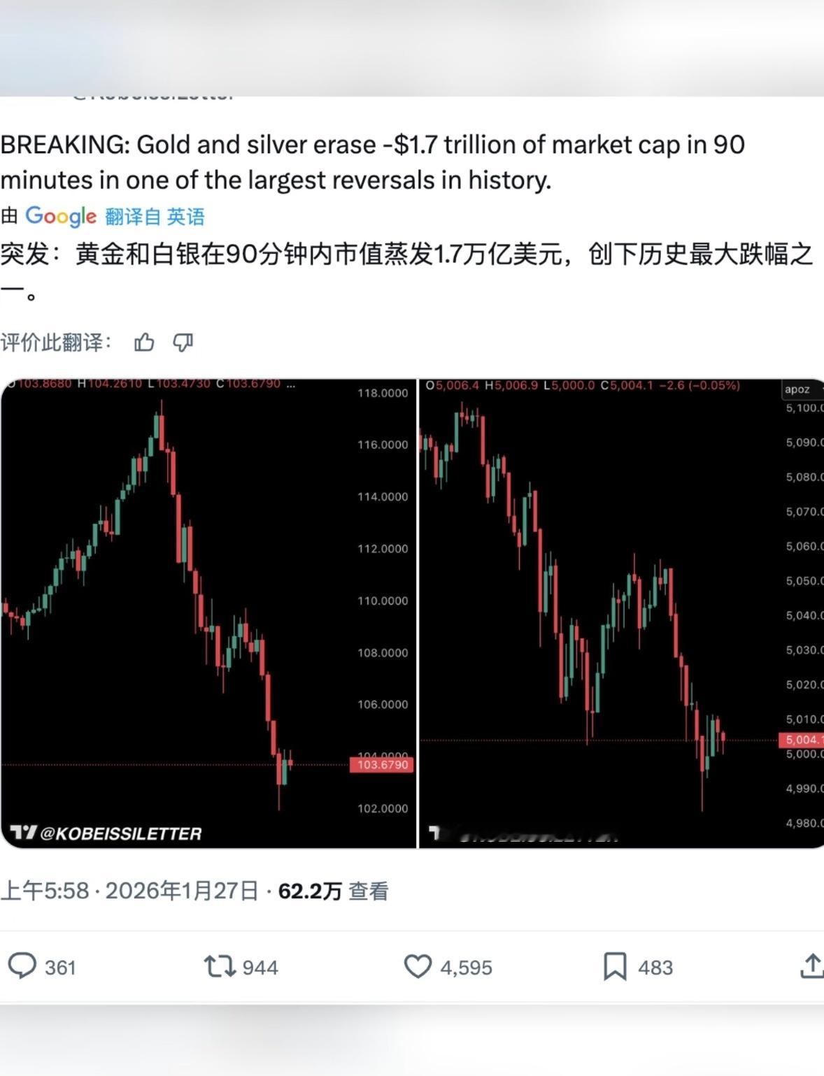 黄金白银大回调突发:黄金和白银在90分钟内市值蒸发1.7万亿美元,创下历史最大跌幅之一。整个冰糖橙🍊的市值没了波动越来越大国内各部门不断层层加码提示风险!