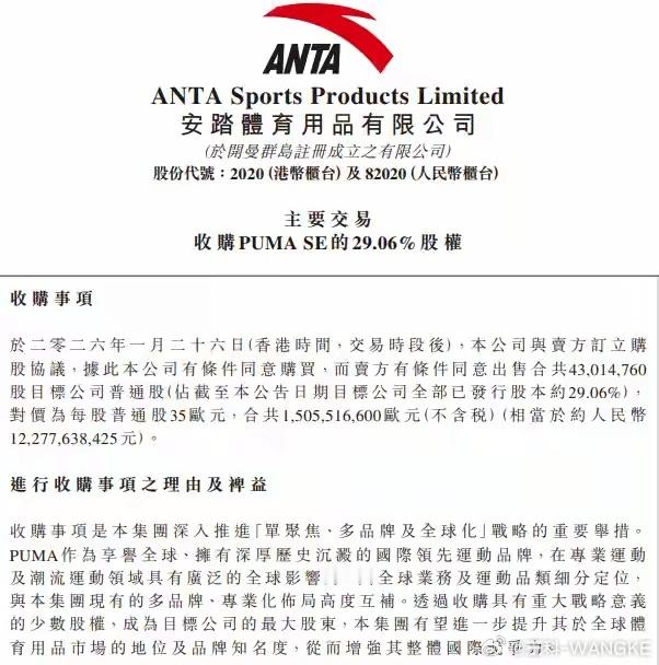 安踏斥资15亿欧元收购彪马29%股权!越来越丰富了!