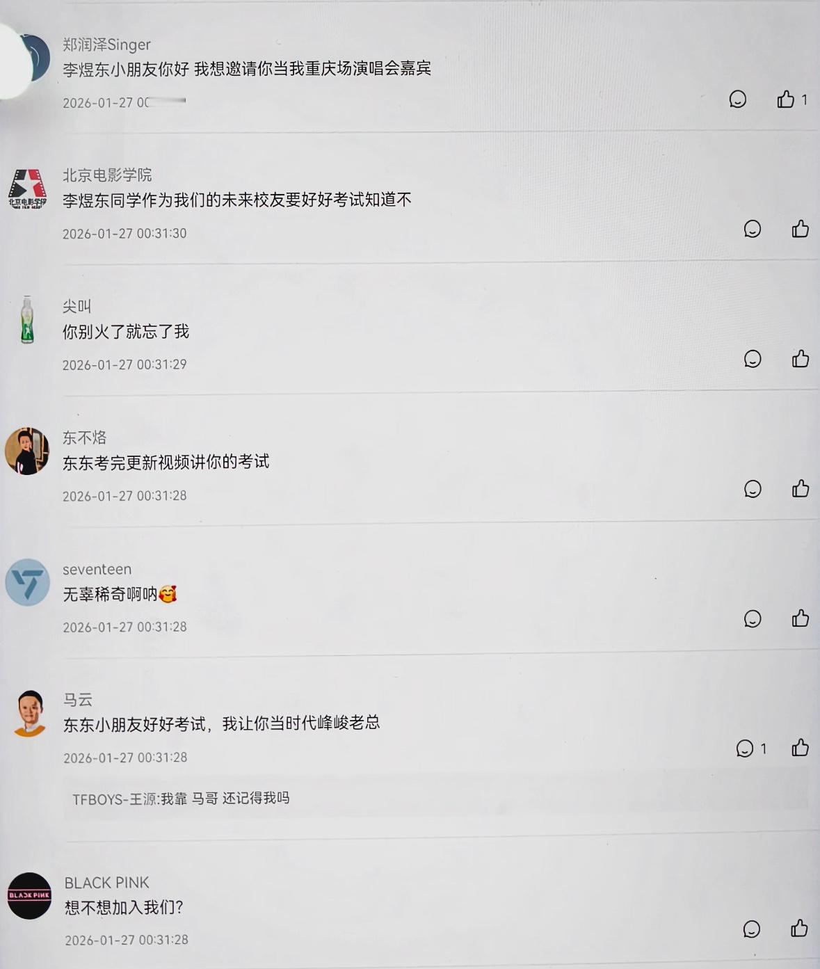 李煜东的高会留言李煜东考试粉丝的高会留言 我不行了,你们东毛怎么这么好笑啊,各个名校游戏软件品牌明星名导动画片人物甚至考研考公名师齐聚李煜东高会评论区,笑的我肚子疼