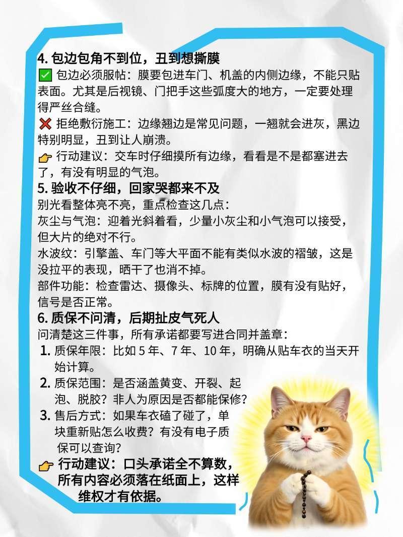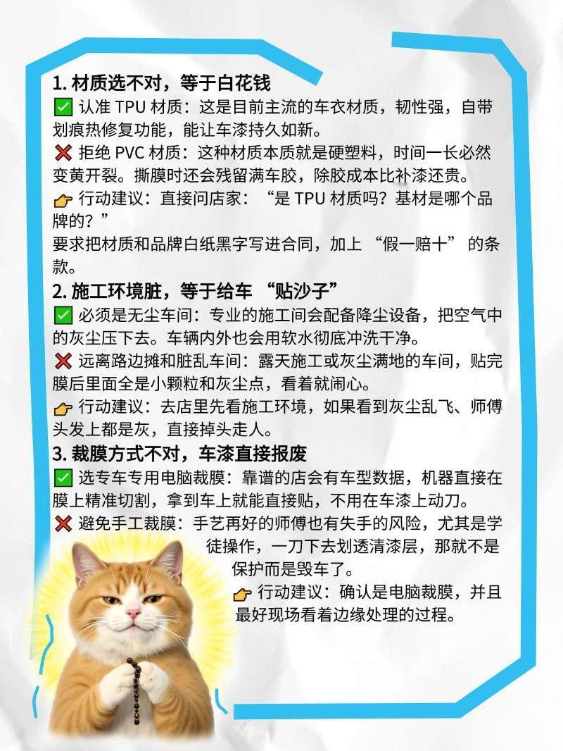 新手必看!贴车衣前一定要搞懂这 6 件事贴车衣本来是为了保护爱车,但要是踩了坑,反而成了毁车现场。记住这 6 个关键细节,别等出问题才后悔!【来自懂车帝车友圈】