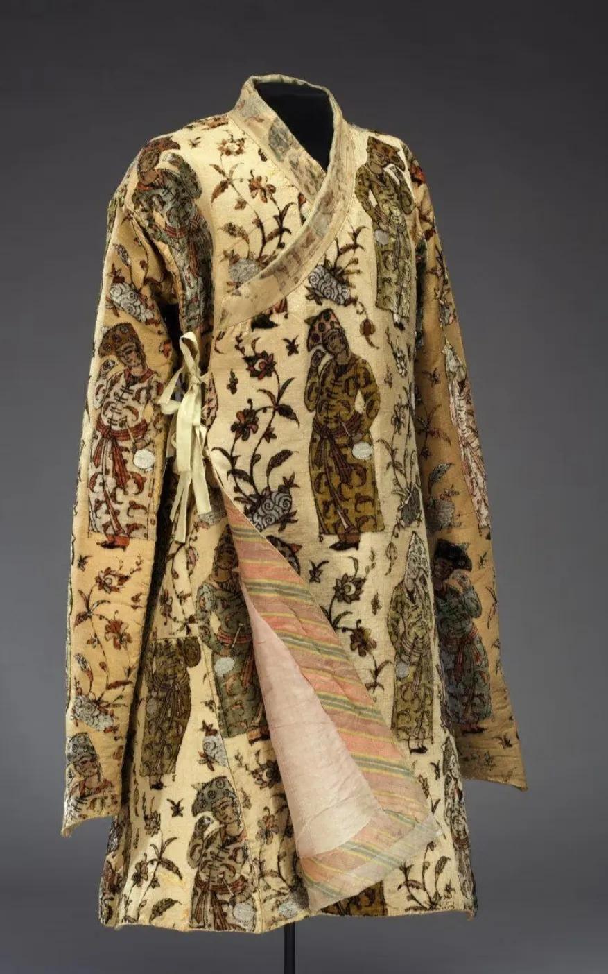 在瑞典王家军械博物馆,收藏着一件波斯阿巴斯王朝时期的萨法维锦袍,是沙皇送给瑞典女王的礼物,这件锦袍交领右衽,有明显的中原服饰特征,只是把宽袖改成了窄袖,可见那时的中原地区与波斯有着密切的往来。