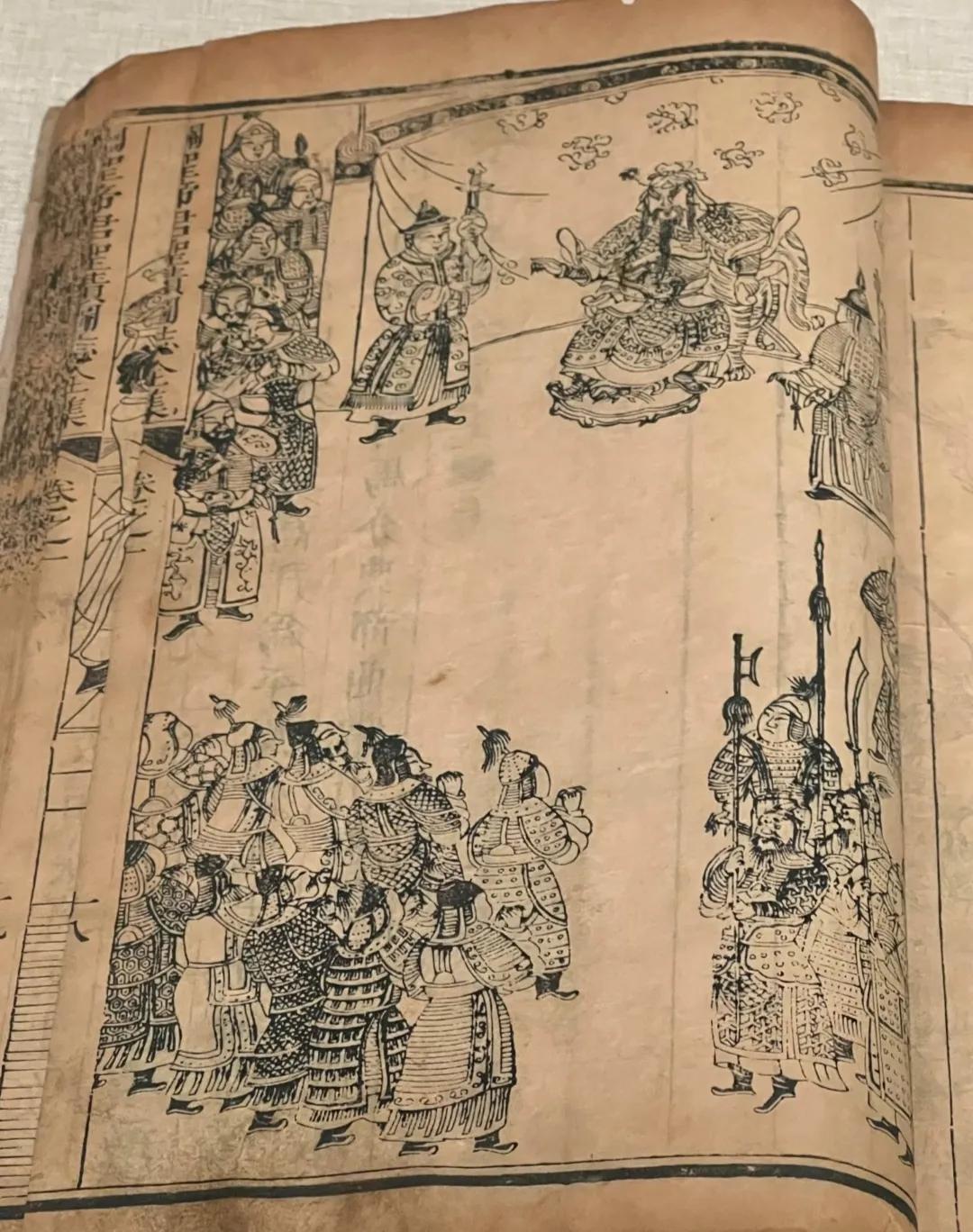 明朝是中国古代甲胄发展的巅峰,在这本《关圣帝君圣迹图志》的画面中,武将的甲胄琳琅满目,扎甲、鱼鳞甲、山纹甲,还有各种叫不出名字的甲都跃然纸上,可见明朝时期制造盔甲的技术已经很发达了。