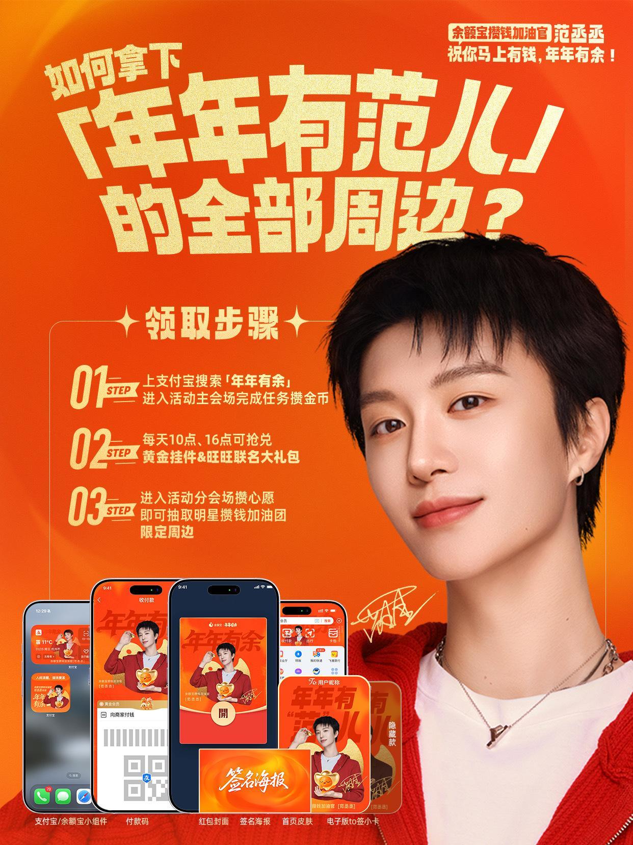 余额宝谐音梗祝福被网友玩坏了谁懂啊,这次年年有余活动,本丞星成就感拉满——🙏接攒钱加油官范丞丞的祝福「马上有钱,年年有范儿」不过,我家猫叫饭饭,这句祝福我家猫也能送:本🐱饭饭祝你马上发财,年年有「饭」儿~(还是只老北京咪咪)此处呼唤心软的余~创意费我也不要了,就许愿个丞丞亲签!!!🙏新的一年,祝我「马上有钱,年年有演唱会前排票!年年有见面机会!年年有新周边!」P.S. 👇上ZFB搜【年年有余】,参与活动每日10:00、16:00抢兑黄金挂件,攒心愿还有机会抽明星攒钱加油团限定周边~