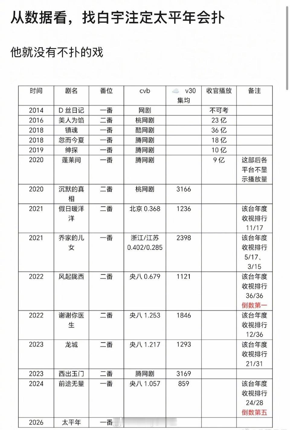 白宇的现代剧《乔家的儿女》《沉默的真相》都爆了,今年的古装剧《太平年》是不是没有