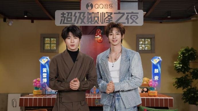 黄誉博颜安直播QQ音乐超级巅峰之夜 被黄誉博颜安直播笑晕!俩人把巅峰之夜官宣玩出花,游戏式解锁嘉宾悬念拉满,脑洞和梗齐飞,QQ音乐这波操作太懂怎么玩了!