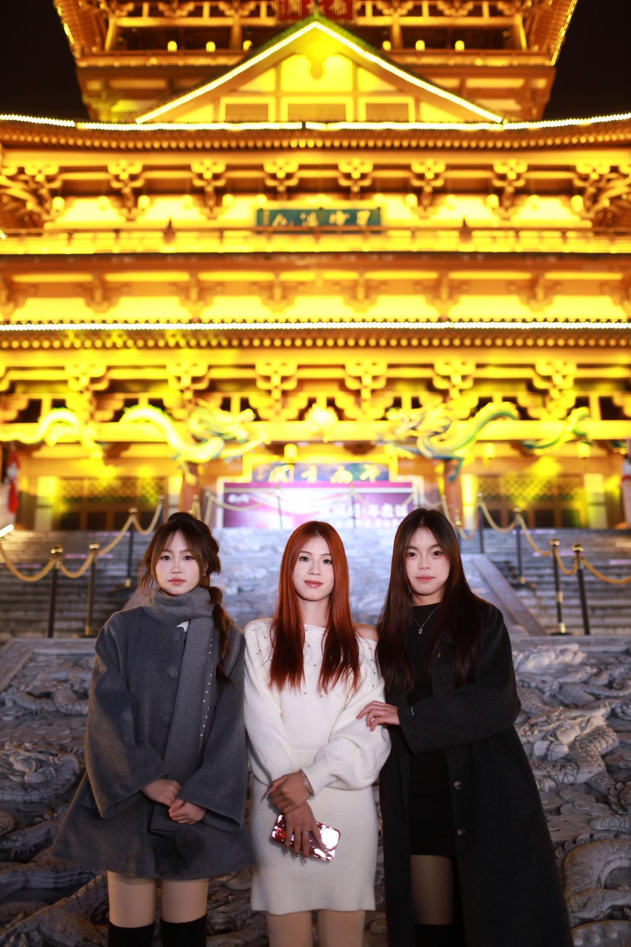 没有风的夜晚还是冷,挡不住喜欢拍照小姐姐的热情。没有笑容,仍可欣赏。~~国风美学