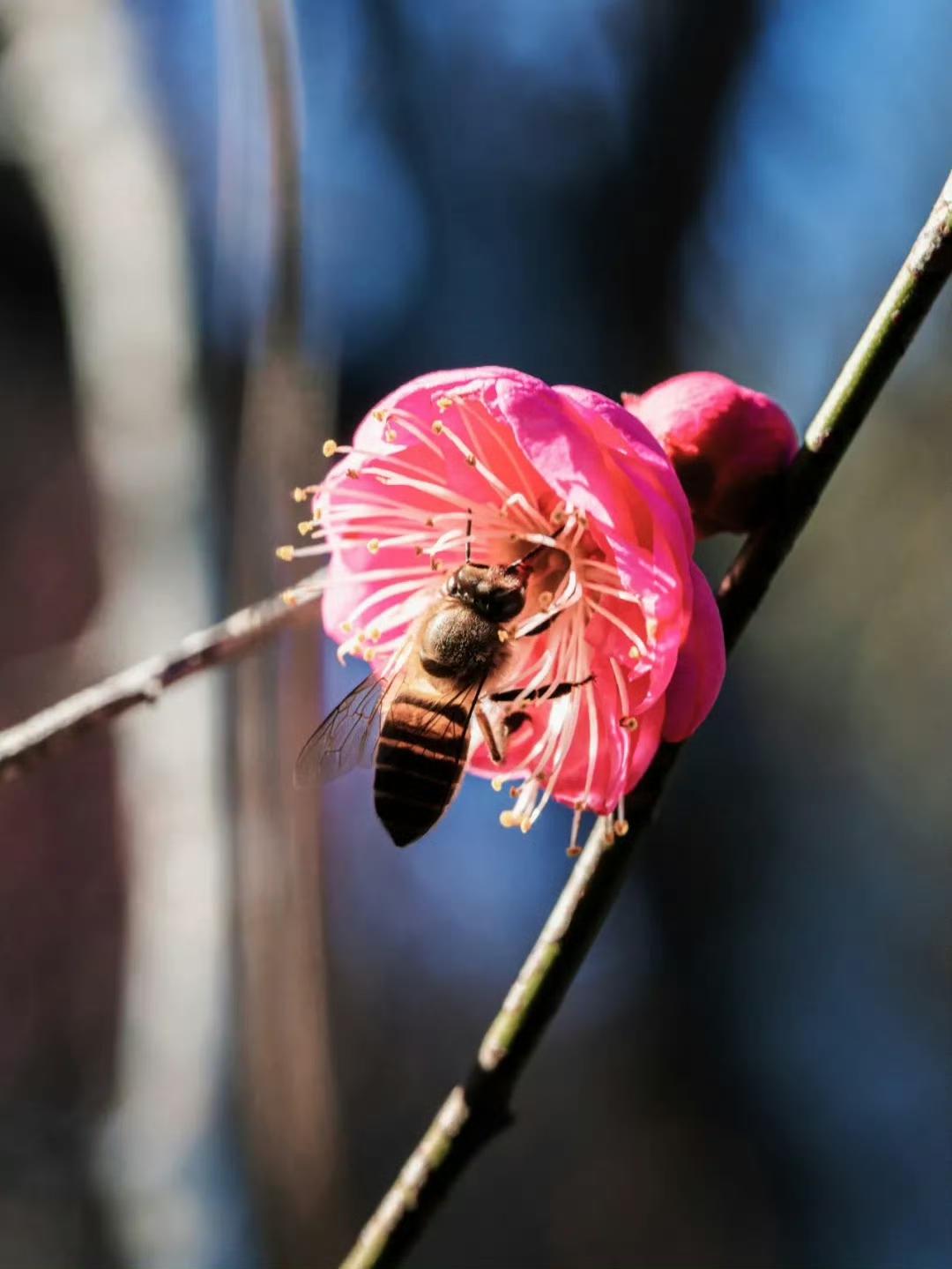 【福州这里也很梅好 - 鼓岭】 晴日里的鼓岭,梅花绚烂绽放,宛如一片粉色云海,连蜜蜂都沉醉在花蕊之中。赏完花海,再来围炉煮茶,暖乎乎的烟火气混着梅香,这才是福州冬日的顶配浪漫!✨Via:@鼓岭旅游度假区 虎纠人讲福州