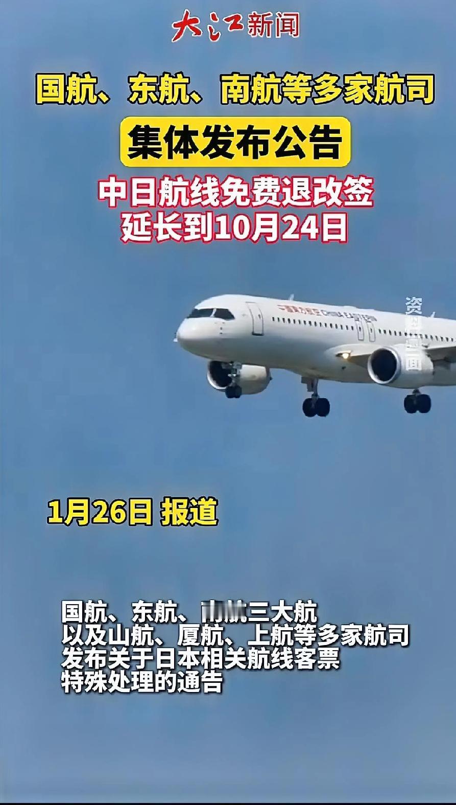 就在刚刚, 中国三大航空公司突然宣布, 1月26日下午,中国国航、东航、南航三大航空公司接连发通知:中日航线免费退改签政策从3月28日直接延长到10月24日! 先把政策本身掰扯清楚:凡是1月26日前买的票,只要航班是2026年3月29日到10月24日期间的日本进出港或经停航班,都能免费退改签。 不用找理由,不用填复杂申请,不用花一分钱手续费。东航能改到原航班前后 3 天,南航首次改免收差价,国航连里程换的票都包含在内 —没有区别对待,没有隐藏条款,一句话:只要符合条件,怎么方便怎么来。 有人纳闷,三大航为啥突然这么 “豪横”?答案就一个:日本的局势,实在太不稳了,而且这种不稳,不是一时半会能好转的。 就在三大航官宣的同一天,外交部同步发了提醒:春节期间,尽量别去日本,不是小题大做,是近期的日本,危险一直在升级,双重风险叠在一起,根本没法让人放心。 先看天灾,拦都拦不住。1 月 6 号,日本岛根县突发 6.2 级地震,一小时内 4 次余震,两次超 5 级,房子晃得厉害,多地出现墙体开裂、道路塌陷;才过 19 天,茨城县又震了,4.2 级,紧接着官宣当天,能登半岛再添 4.6 级地震,海啸预警直接拉响。 天灾未平,人祸又来添乱。外交部点明的“社会治安不靖”绝非虚言。2025年跨年夜,东京新宿区就发生汽车冲人行道事件,3人受伤含中国游客。近期针对中国公民的恶性案件扎堆,福冈、静冈等地出现无端辱骂殴打游客事件,大阪心斋桥有同胞逛街时手机被抢,报警后半月无果。数据显示,去年11月至今,针对中国公民的暴力案件同比暴涨240%,破案率却不足30%,赴日旅游如同开盲盒,危险防不胜防。 日本政府自身都发布了地震高风险预警。专家预测2026年或为日本大地震“拐点年”,东京30年内遭遇首都直下地震的概率高达70%。更令人心惊的是,千岛海沟或日本海沟若发生巨震,岩手县宫古市可能遭遇近30米高海啸(相当于10层楼),青森县、北海道亦难幸免。如今赴日,无异于在地震带与海啸预警区间穿行,安全毫无保障。 三大航此次“豪横”政策,核心是将安全置于首位。往年日本地震后,航企免退改政策最多持续一个月,此次直接延长至10月底,跨度达7个月,背后是对日本局势的长期审慎判断。国航涵盖里程兑换机票,东航、南航政策以旅客便利为核心,无任何隐藏条款,这份底气源于官方掌握的风险信息,是给中国公民的坚实安全保障。 外交部直接提醒“春节期间避免前往日本”,针对性极强。农历春节本是出境游高峰期,往年东京、大阪商场满是中国游客,如今官方明确劝退,足见情况严峻。驻日使领馆早于1月3日发布安全提醒,驻大阪总领馆更嘱咐同胞储备3天饮用水和食品、规划撤离路线,细节之处尽显危险临近。 日本旅游业已遭受重创。日本政府观光局数据显示,2025年12月中国内地访日游客仅33万余人次,同比暴跌45.3%;2026年1月中日航班取消率接近半数(47.2%)。大阪心斋桥药妆店、东京银座百货等昔日中国游客聚集地,如今商品积灰、中文导购闲置,2025年免税销售额全年下降12.7%,不少店铺已挂出转让告示。 这一切早有预兆。日本首相高市早苗发表涉台挑衅言论后,中日关系急转直下。她漠视国内民生与安全问题,专注外交挑事,最终让普通民众与旅游业买单。如今日本内遭地震海啸威胁,外陷外交僵局,社会治安持续恶化,这样的环境已无安全出行可言。 或许有人觉得“日本以前也地震,不也没事”,但此次是天灾人祸双重暴击,风险持续升级。专家明确日本地震活动进入活跃期,后续或有更大灾害;社会治安层面,日本警方连本地案件都难以应对,更无力保障外国游客安全,赴日旅游实则拿生命冒险。 三大航政策与外交部提醒,是理性引导而非强制禁止,既保障民众出行安全,又给已购票者反悔余地,尽显人文关怀。春节本是阖家团圆、舒心旅游的日子,没必要冒生命危险赴险,国内海南阳光沙滩、云南雪山古镇、东北冰雪大世界等旅游资源,既能放松心情又安全无忧;即便想出境,也有诸多更安全的选择,不必执着于局势动荡的日本。 日本若不重视安全隐患、持续放任局势恶化,受损的终将是自身。旅游业是日本支柱产业之一,失去中国游客这一重要市场,其经济复苏之路将更加艰难。希望日本政府早日清醒,将精力放在改善国内安全环境、应对自然灾害上,而非在外交上挑事,否则只会越陷越深。 各位读者你们怎么看?欢迎在评论区讨论。