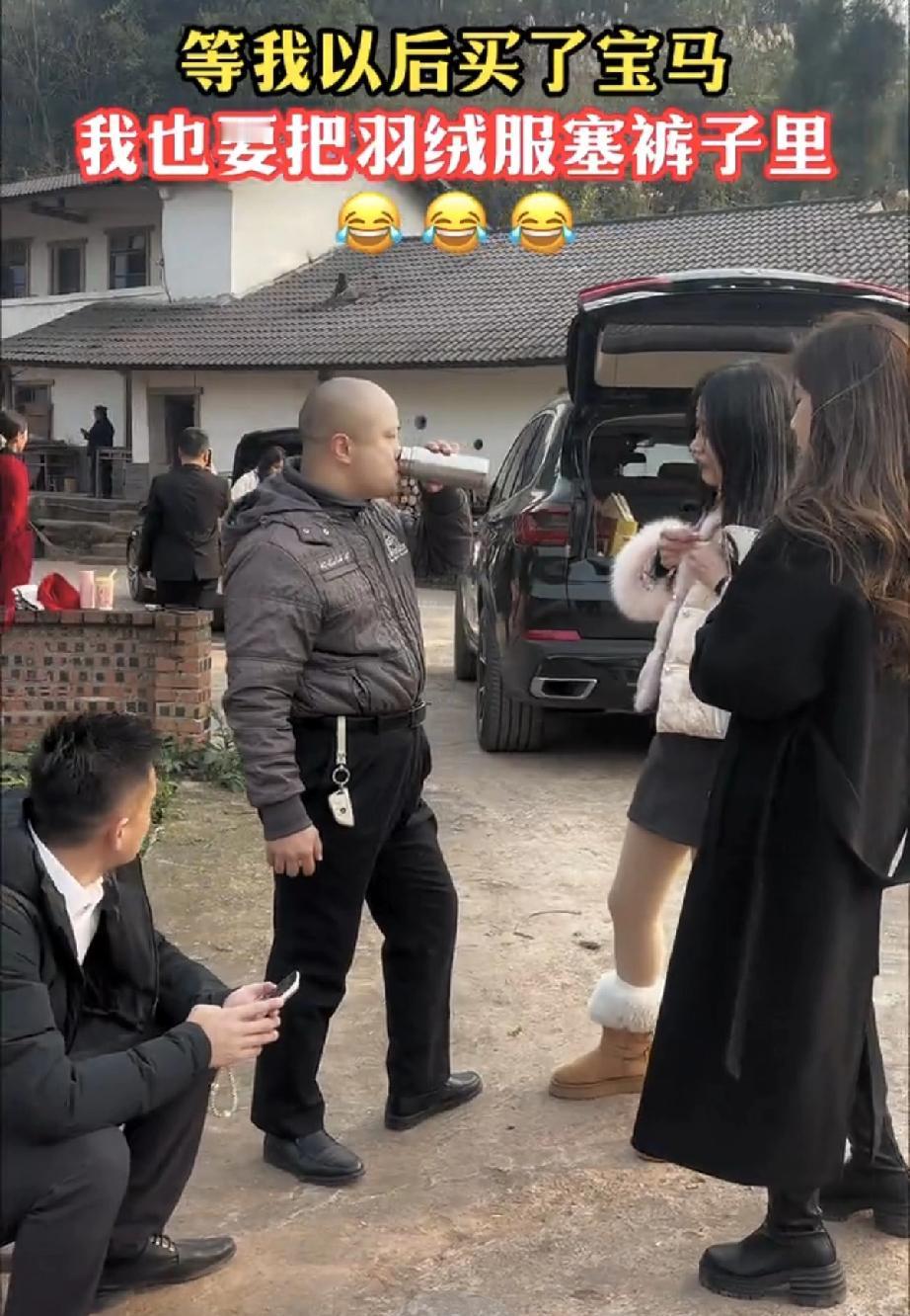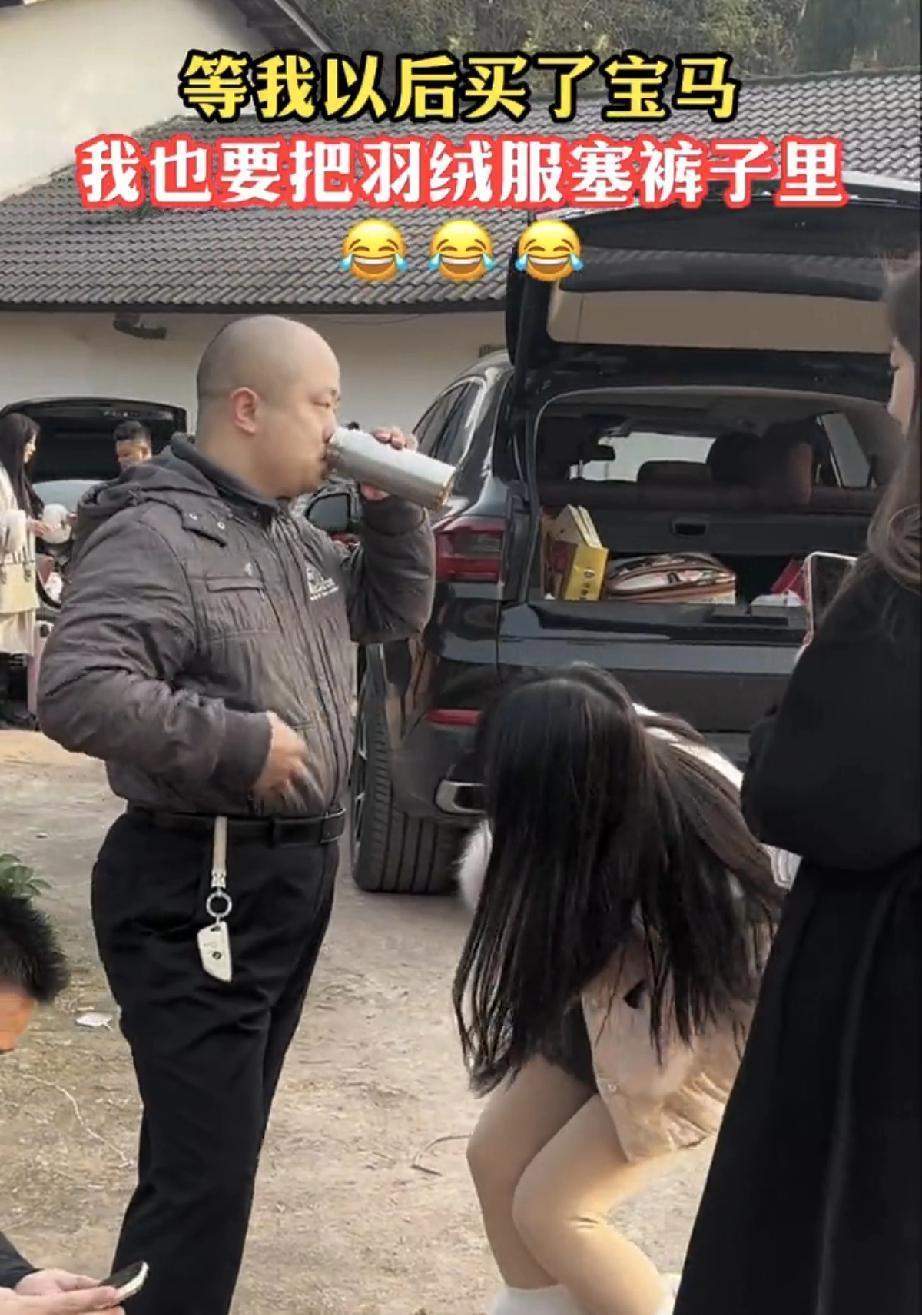 怪不得两个美女追着看,买了宝马的人气质就是不一样,连穿羽绒服都要寄了裤子里去😳宝马