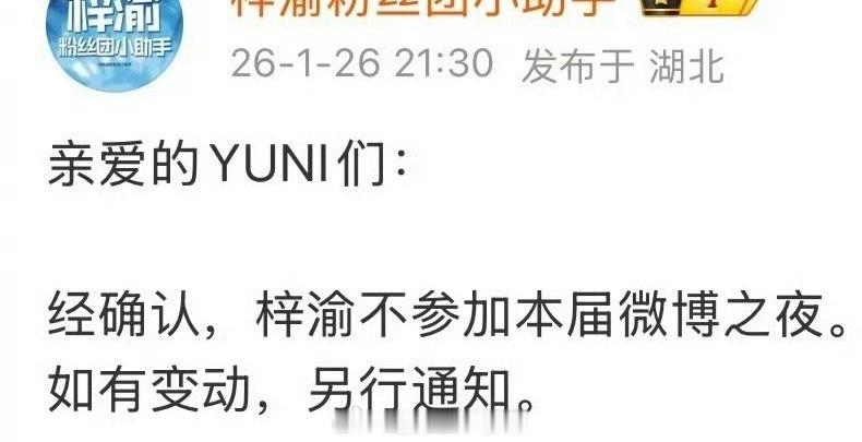 梓渝方发文称不参加微博之夜,是有别的活动吗