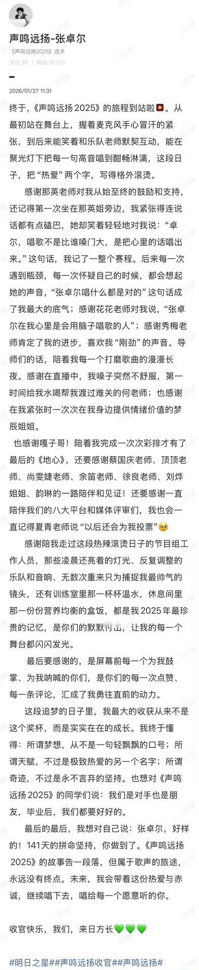 华晨宇自拍视角下的那英张卓 张卓尔能在舞台上不断进步,离不开那英的悉心点拨,这份前辈的用心,被他妥帖记在心里,化作长文里的句句感恩。声鸣远扬