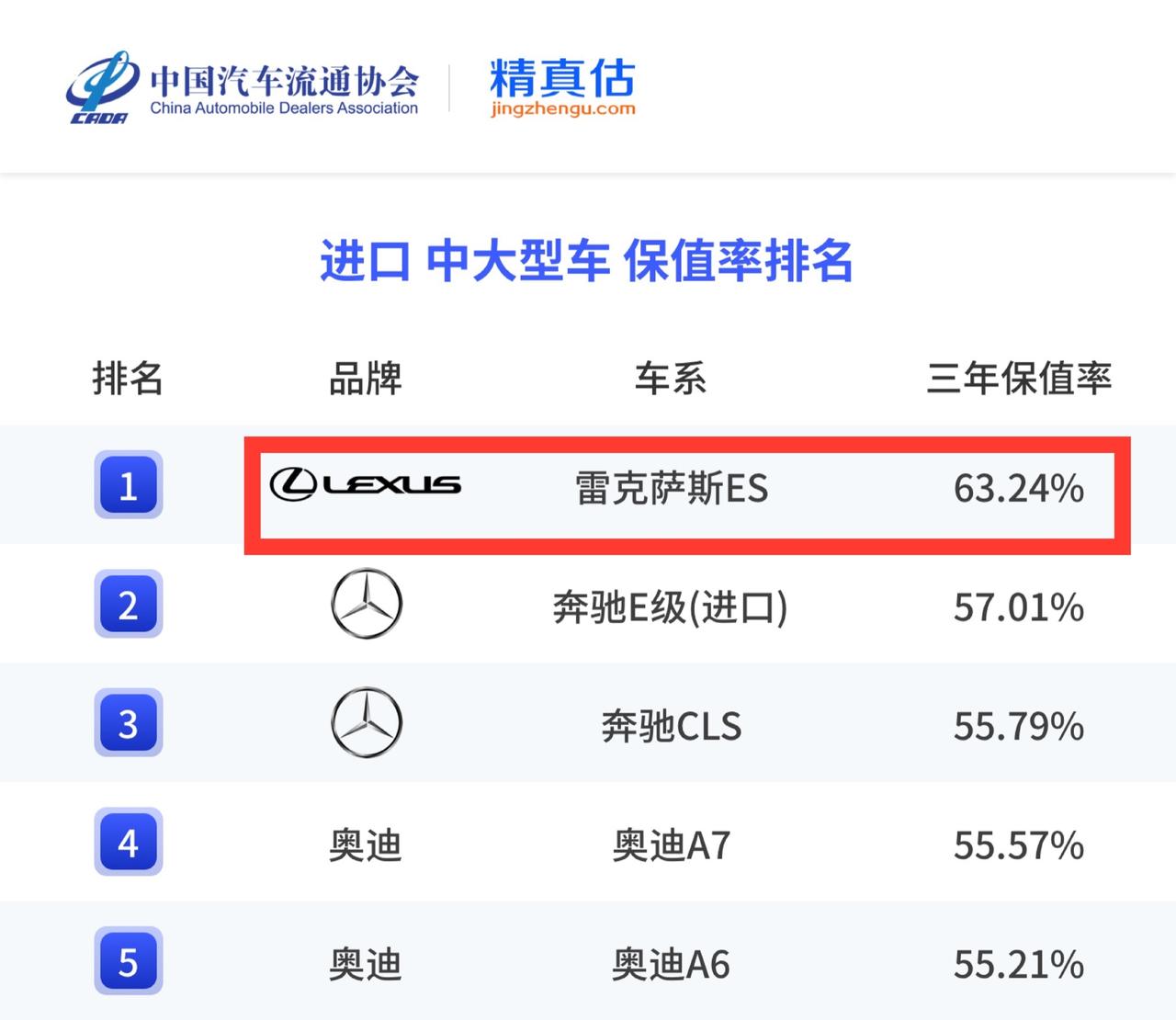 2025年汽车保值率数据出炉,豪华品牌中,保时捷第一,雷克萨斯第二,奔驰第三。ES依然是进口中大型轿车的稳稳的第一。[机智]