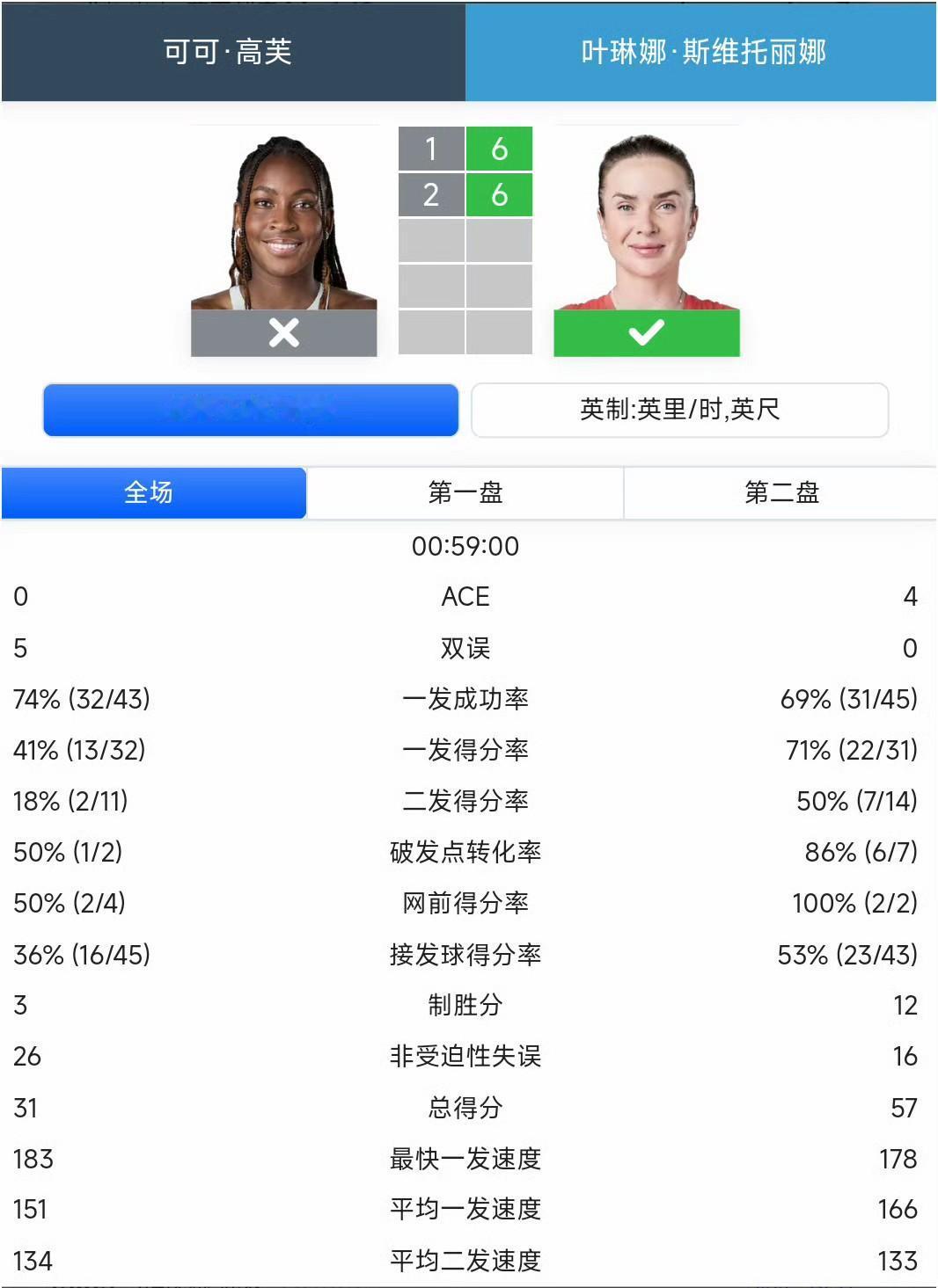 这届澳网很神奇,每个面对斯维托丽娜的对手,状态都自动掉一档,难道真要老树开花了? 高芙疑似失去所有力气和手段,整场梦游。结果不出意外,澳网1/4决赛,斯维托丽娜大比分2-0(6-1/6-2)战胜高芙晋级。
