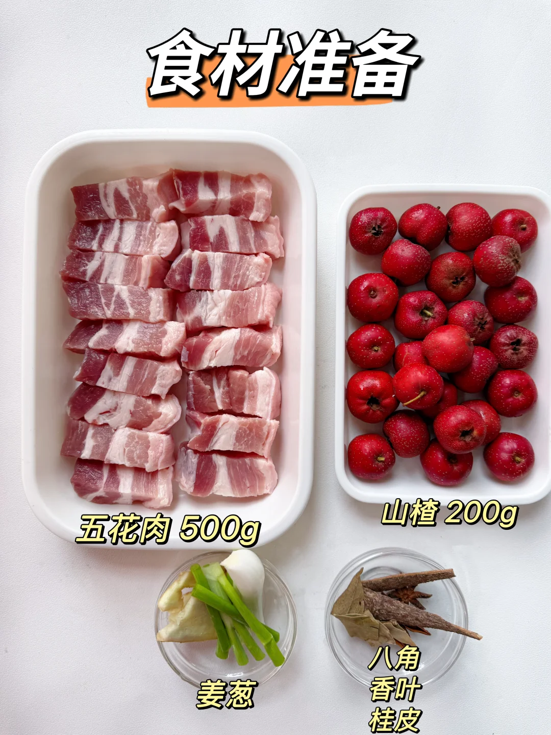 📝【食材】:五花肉、山楂、姜葱、香叶、桂皮、八角