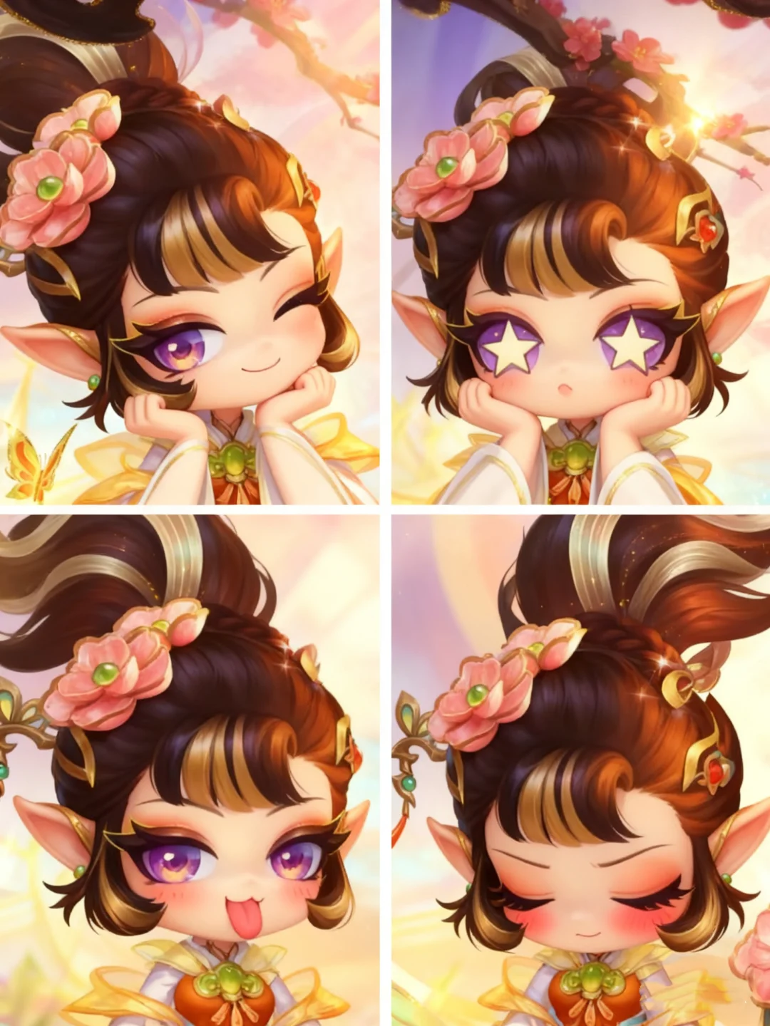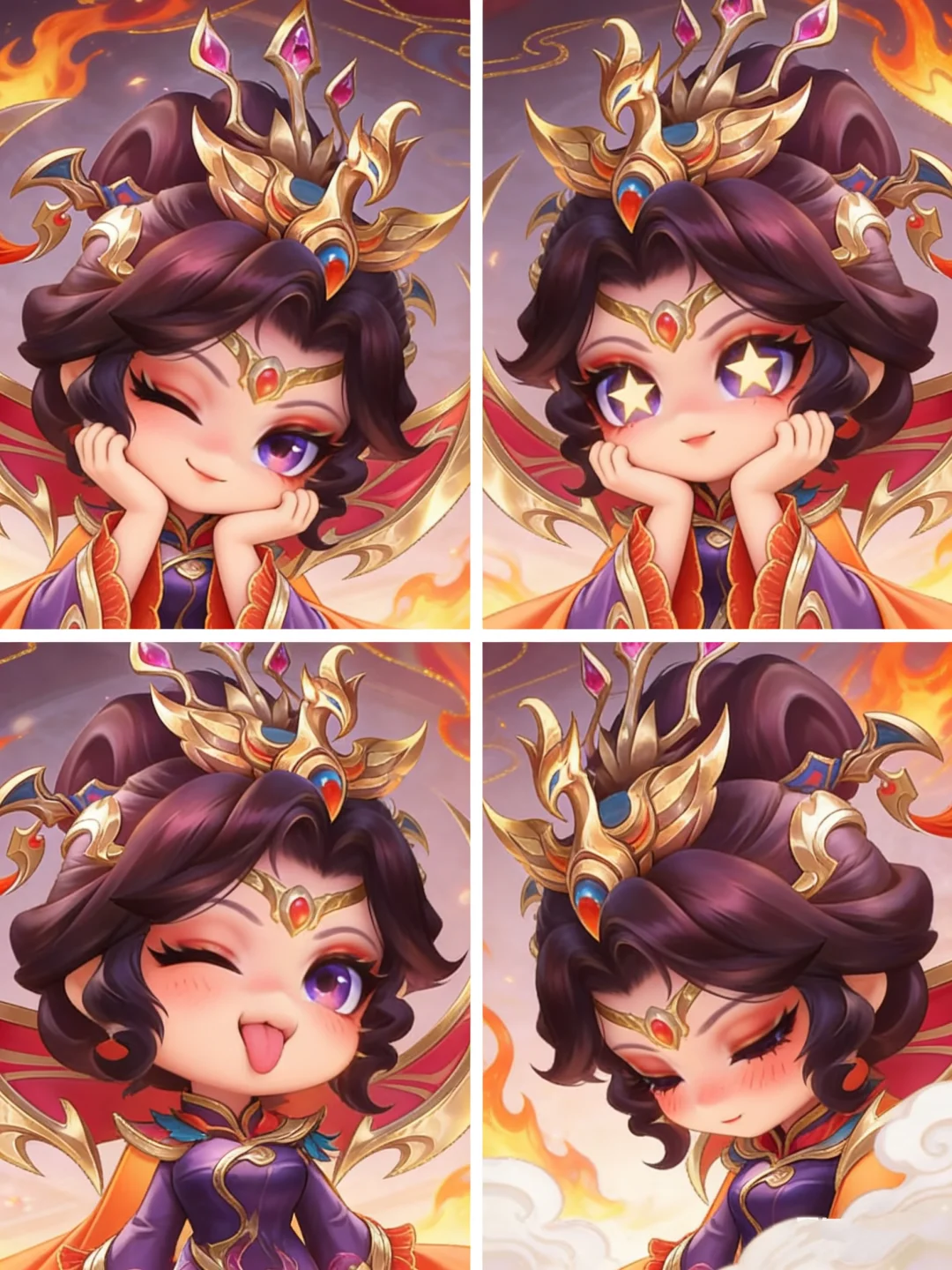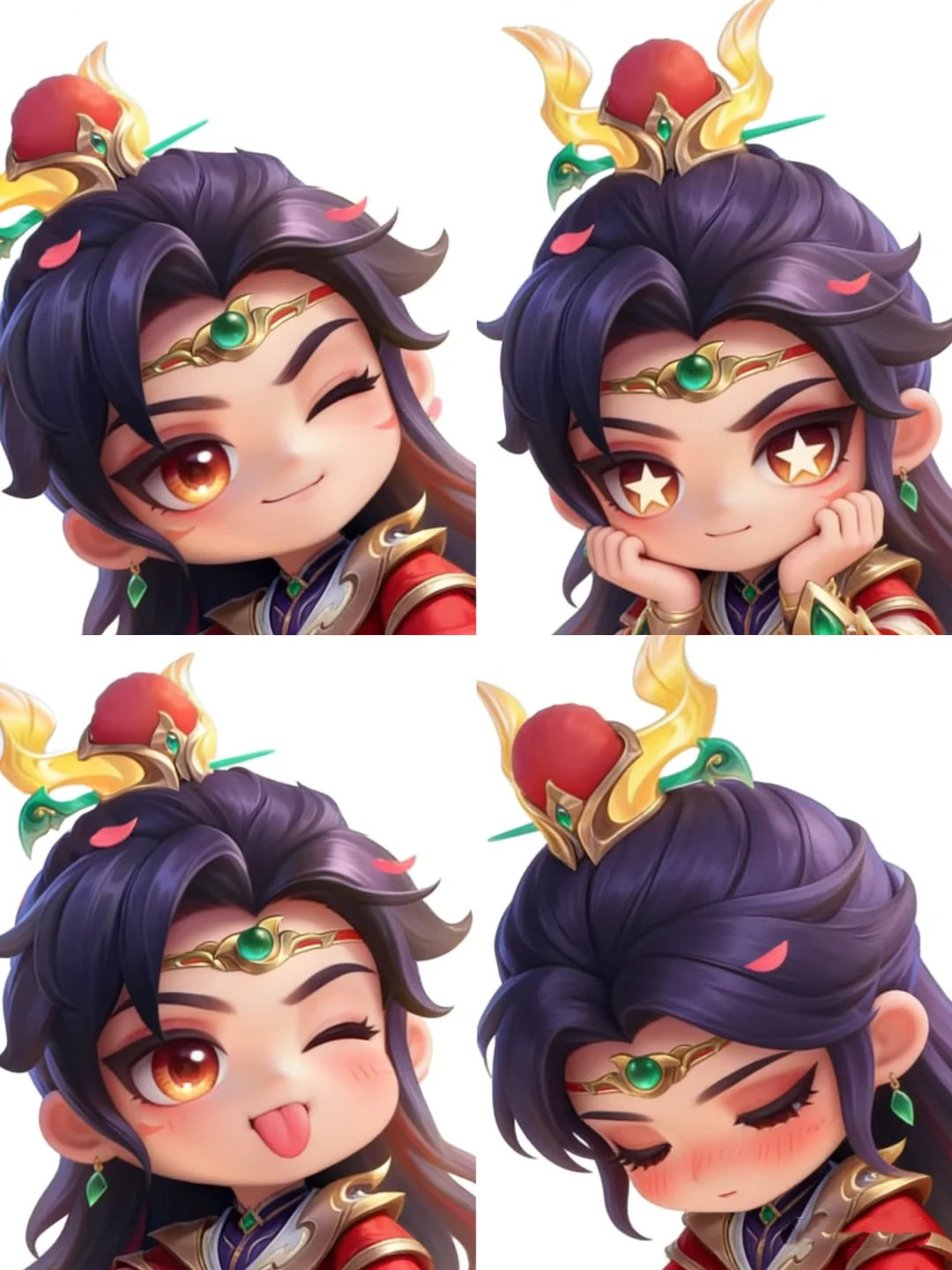 😆黛玉宝宝可而爱之 1️⃣左上(眨眼笑)😉 宝哥哥这嘴是抹了蜜不成?今日倒会哄人开心了 2️⃣右上(星星眼托腮)🤩 若你心里真有我,我便是化作灰,也跟着你去 3️⃣左下(吐舌笑)😊 罢了罢了,偏生你会说话,哄得我一时忘了烦恼 4️⃣右下(害羞闭眼)☺️ 天怪冷的,你且回去吧,仔细冻着。我……我只是有些乏了