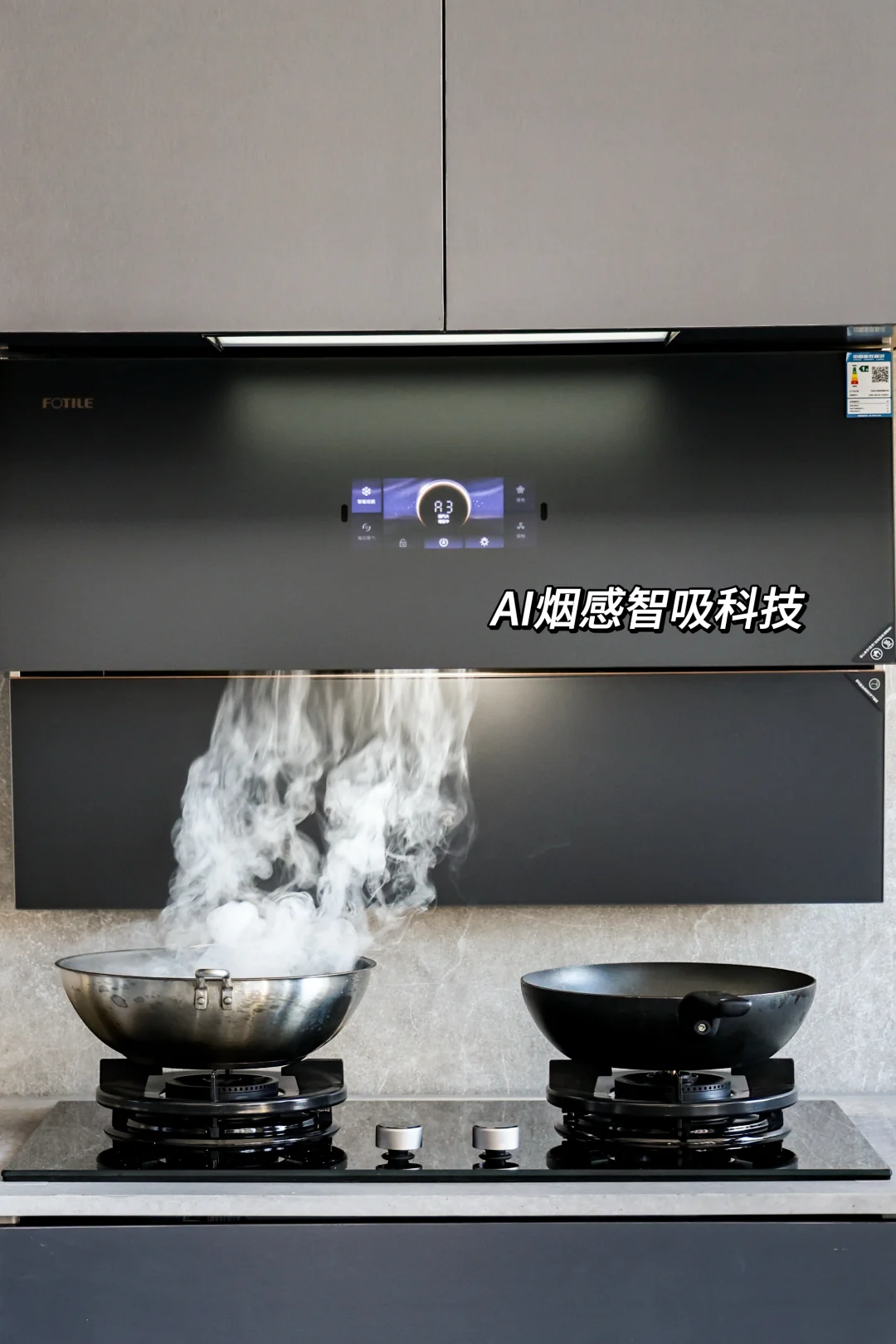 当然,油烟机关键还是得看效果。以前家里爆炒个菜,油烟味儿容易散到客厅。换了这个之后,感觉吸得挺干净的,灵翼三折叠结构,展开后拢烟的范围变大了,油烟不会跑出来。现在炒菜,厨房门开着,家里也基本闻不到什么味道,清爽很多。