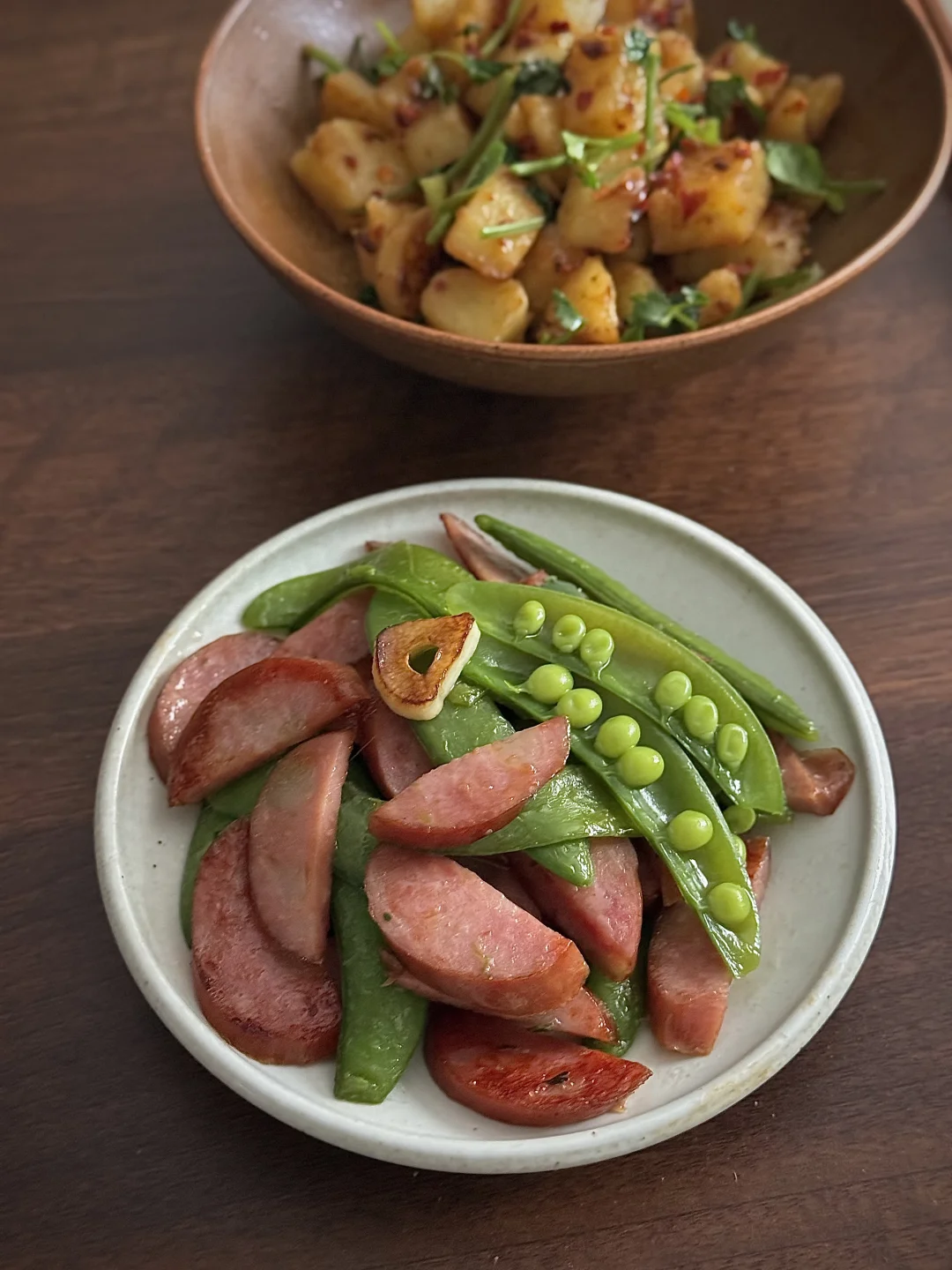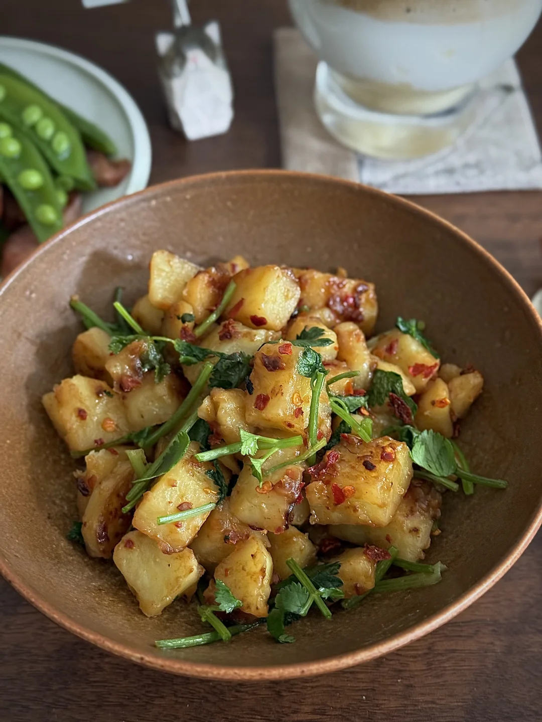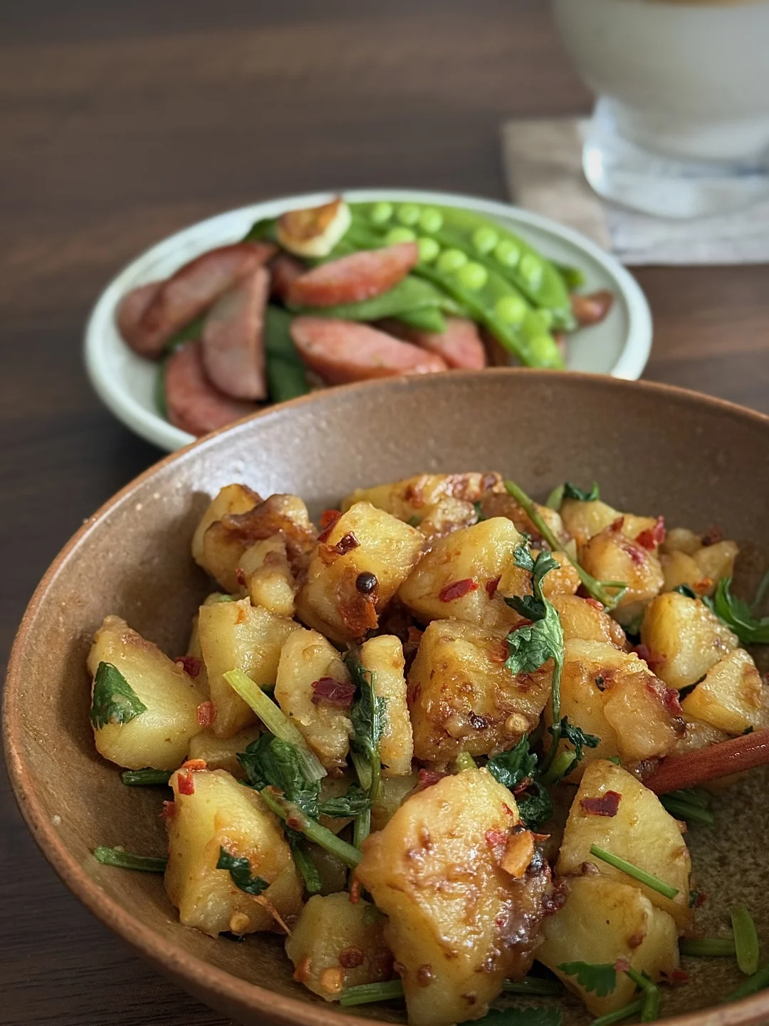 午餐分享: 🥔炒土豆 🌭红肠甜豆 🍌香蕉拿铁 记忆会模糊,却始终会惦记起一些美味 突然回忆起——校门口铁锅翻腾的镬气 土豆边角微微的焦香 阿姨豪爽撒下的一把葱花…… 是一种简单的、粗砺的、充满生命力的味道。 自己在家做,油放少了没那么焦 但胜在干净开胃😋 有些味道,哪怕只还原七分, 也足够温暖一个突然怀旧的午后。