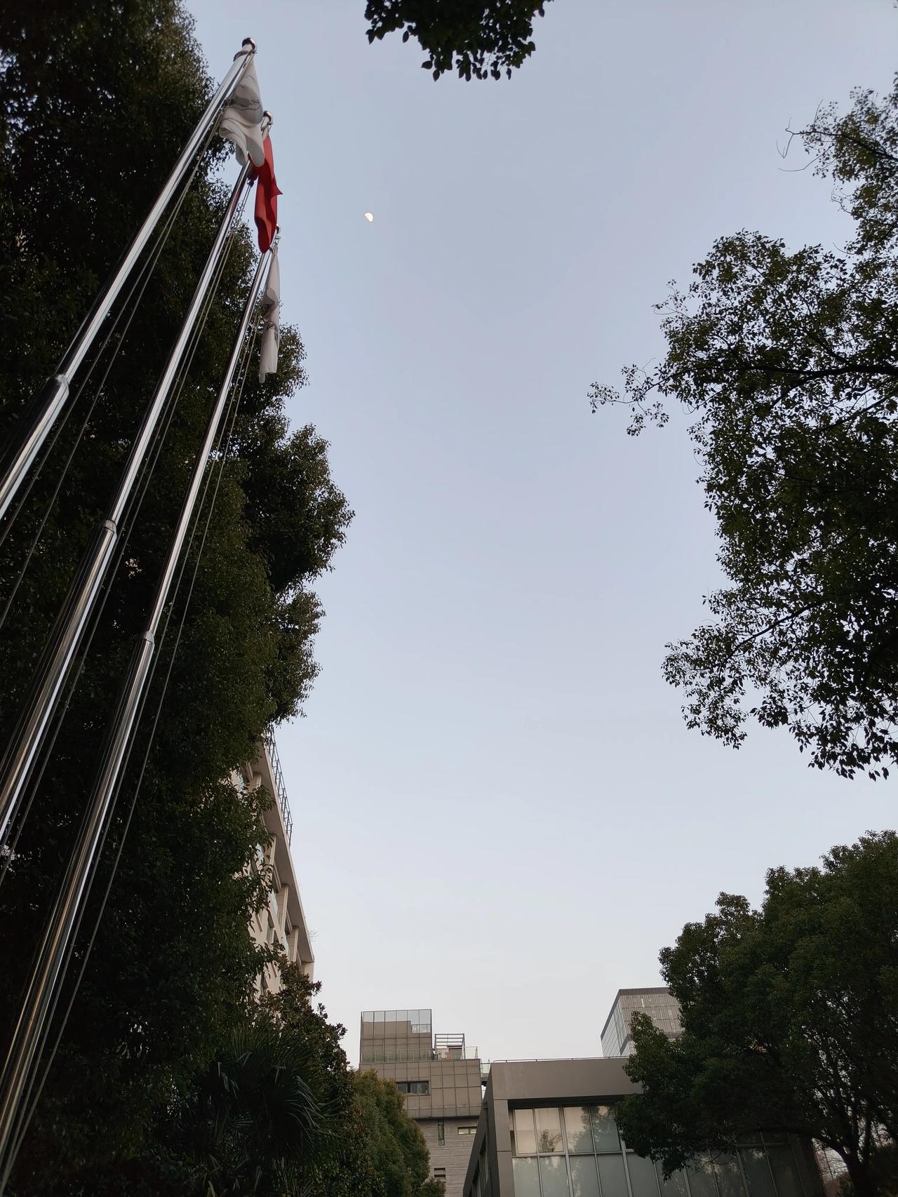 下班随手拍实景图分享! 今天下班早了点, 天还没黑~月亮🌙已经出来了! 图2️⃣🌙