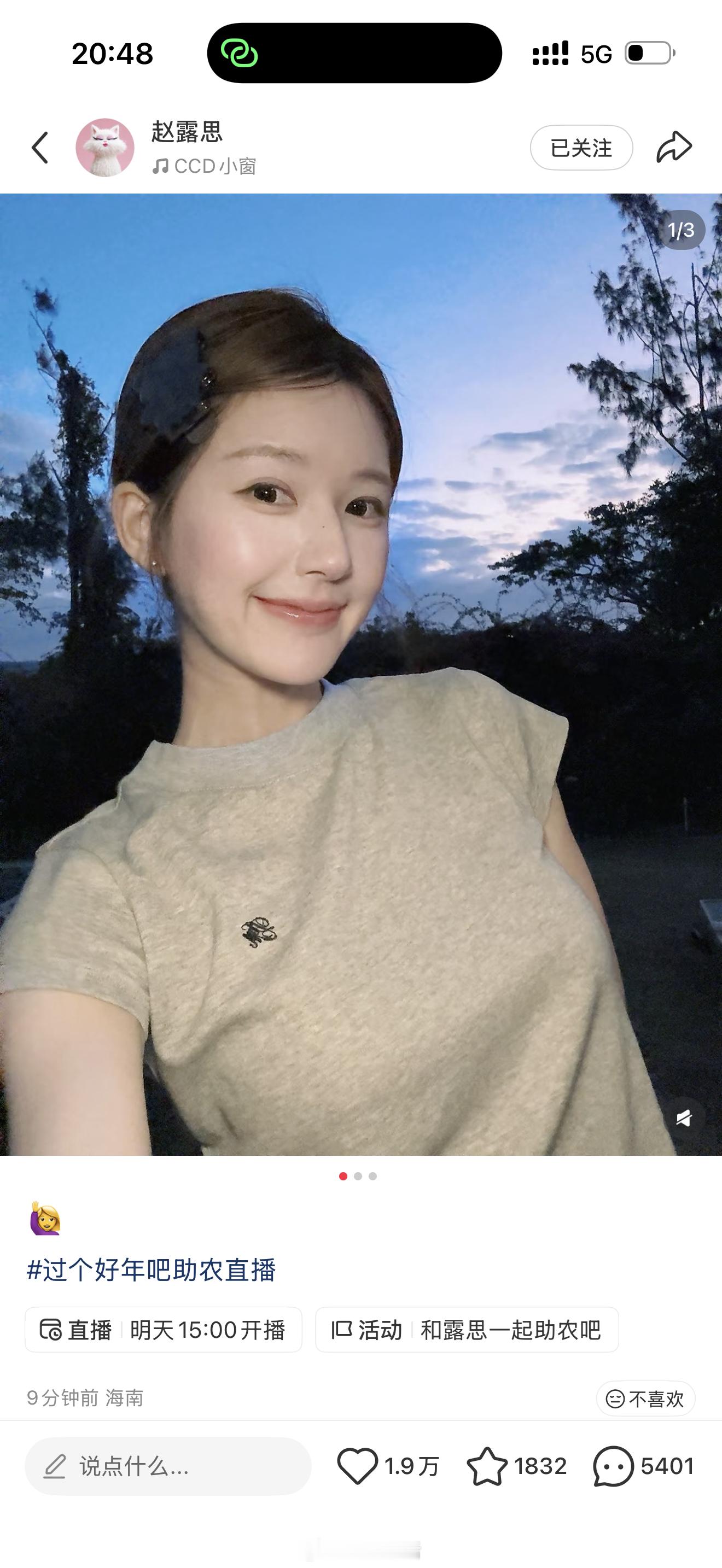 直播状态超好的赵露思,拍立得好漂亮。