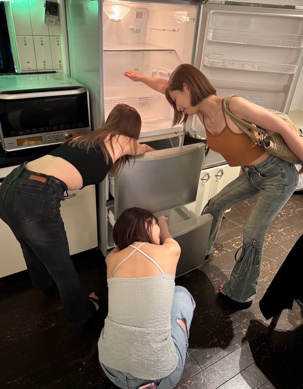 女生一个人的时候,或许还比较矜持,跟好姐妹们一起的时候,就变得搞笑起来了。