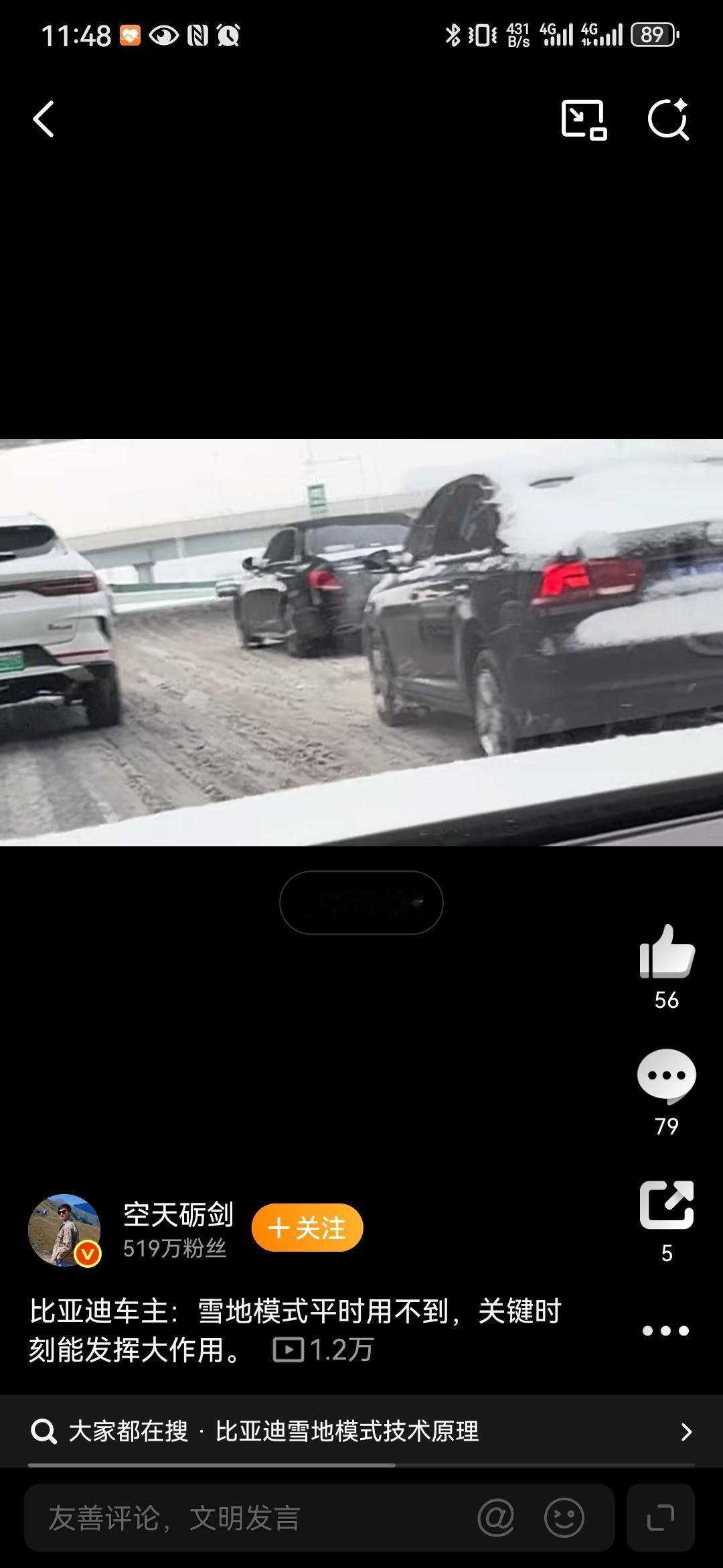 不比不知道,大雪泥泞,还有点上坡,周围的车子都在艰难的前移,比亚迪车主开着雪地模式,惬意的看着车子稳步前行,有雪地模式就是好啊,不巧一辆特斯拉model y映入眼帘,后面竟然有两个人在努力推车!难道特斯拉没有雪地模式?还是modely车体过重,不知道特斯拉车主,有没有后悔当初的选择?