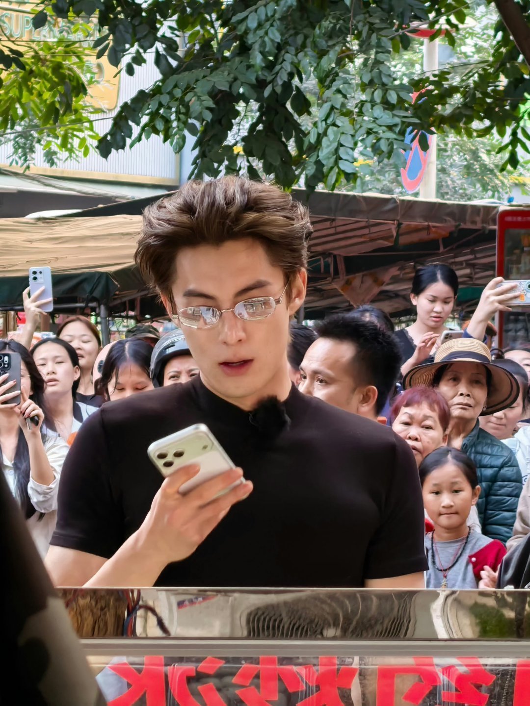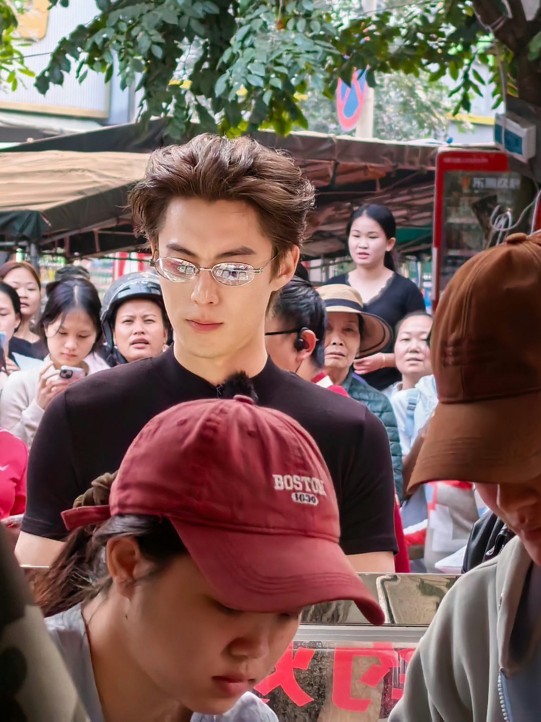 张天爱跟素人合影,胯真的好宽,大宅院似的