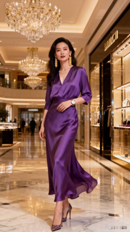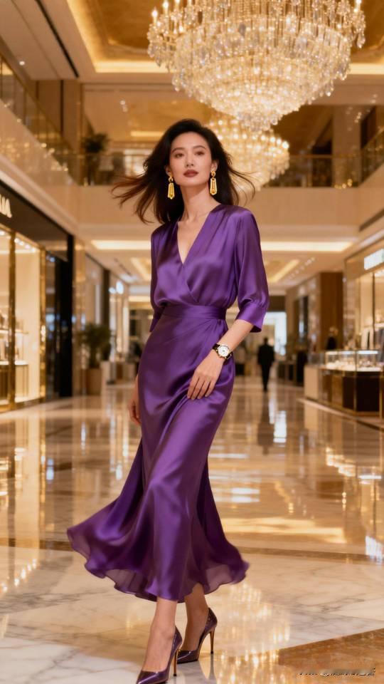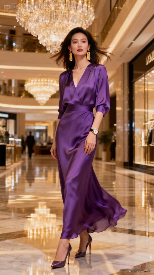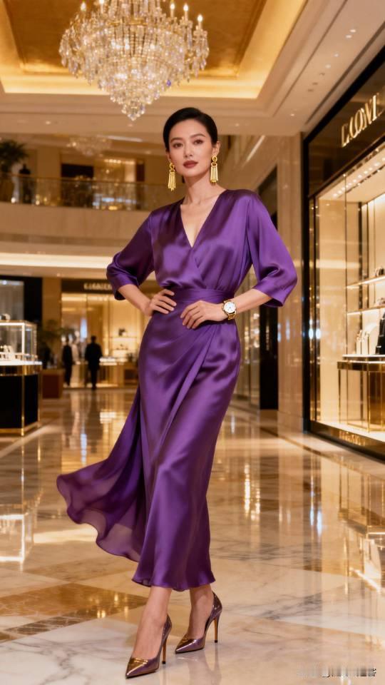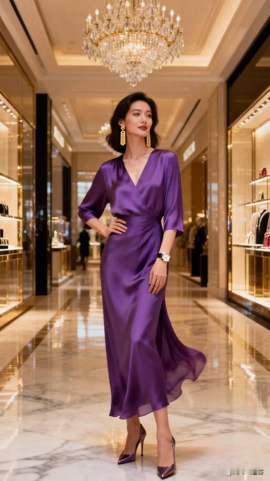 记录我的2026身穿紫色真丝连衣裙的御姐御姐 连衣裙 高雅气质美女