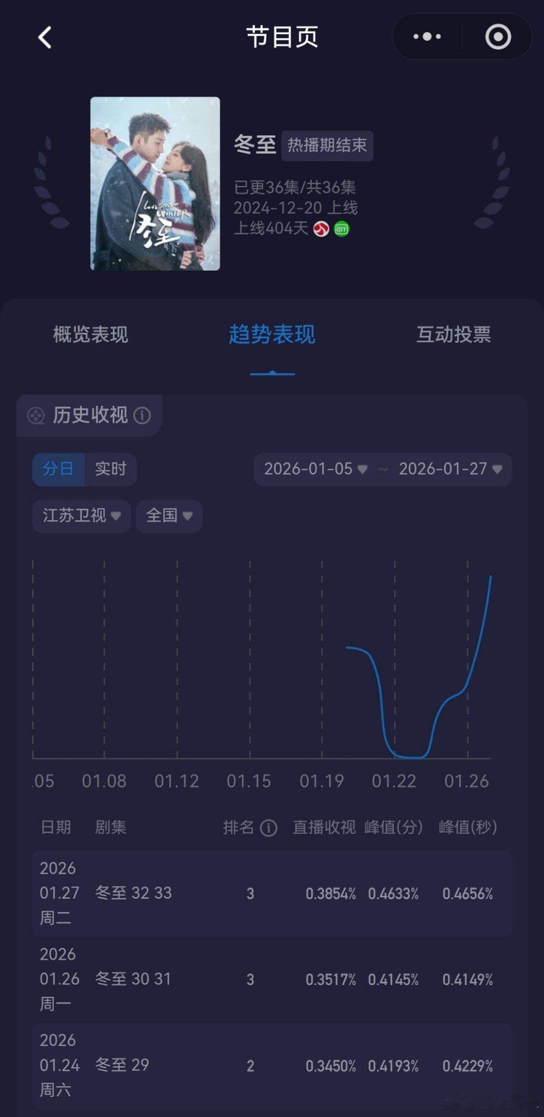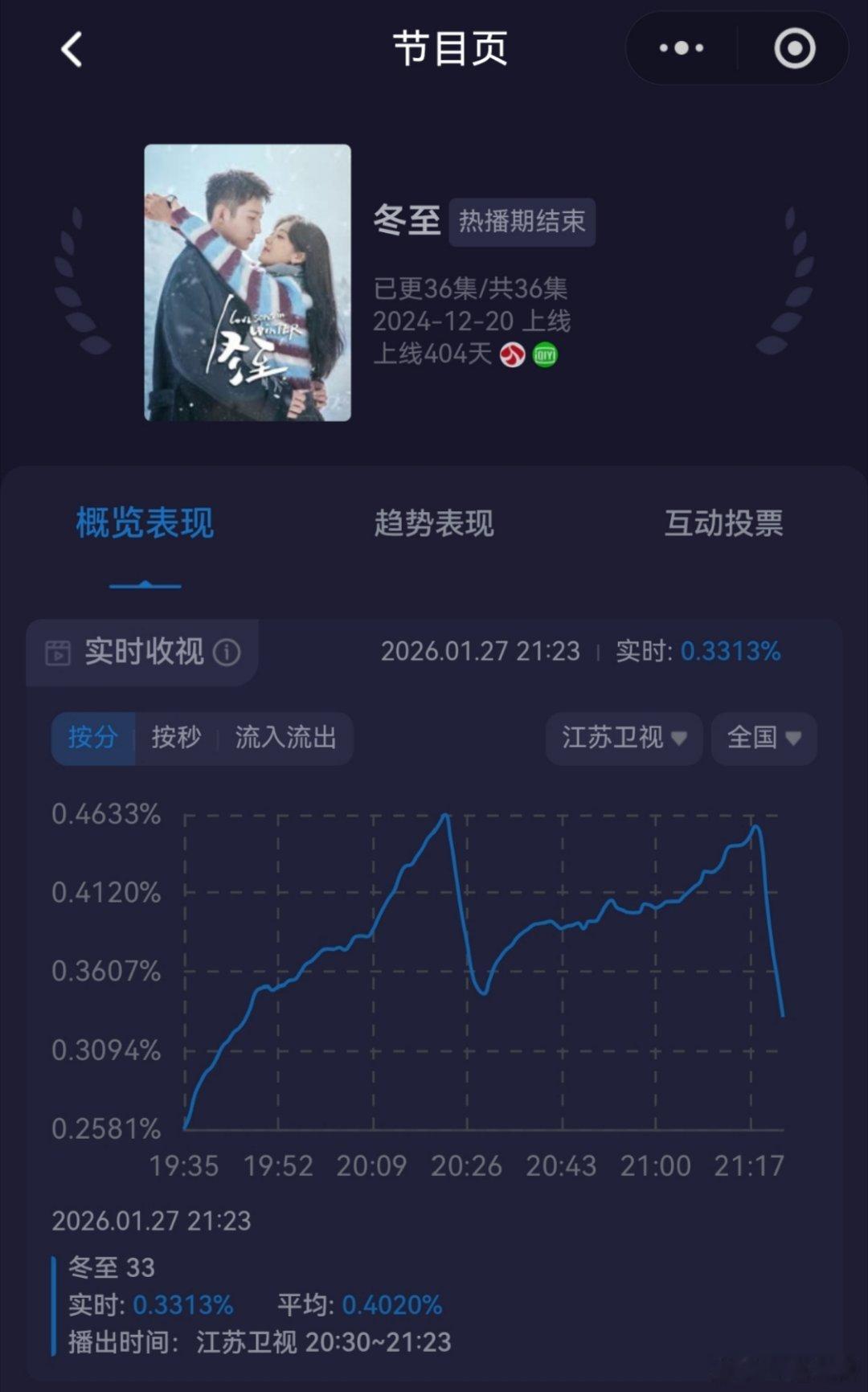 如此优秀,又上新高,明天播34、35等于是大结局了。江苏卫视冬至