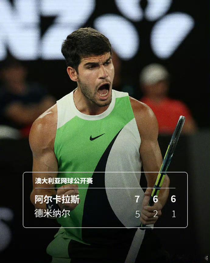 【阿尔卡拉斯实现四大满贯全四强】🎾澳网男单1/4决赛,阿尔卡拉斯7-5/6-2/6-1击败德米纳尔,职业生涯第一次打进澳网四强,实现四大满贯全四强。(咪咕体育)