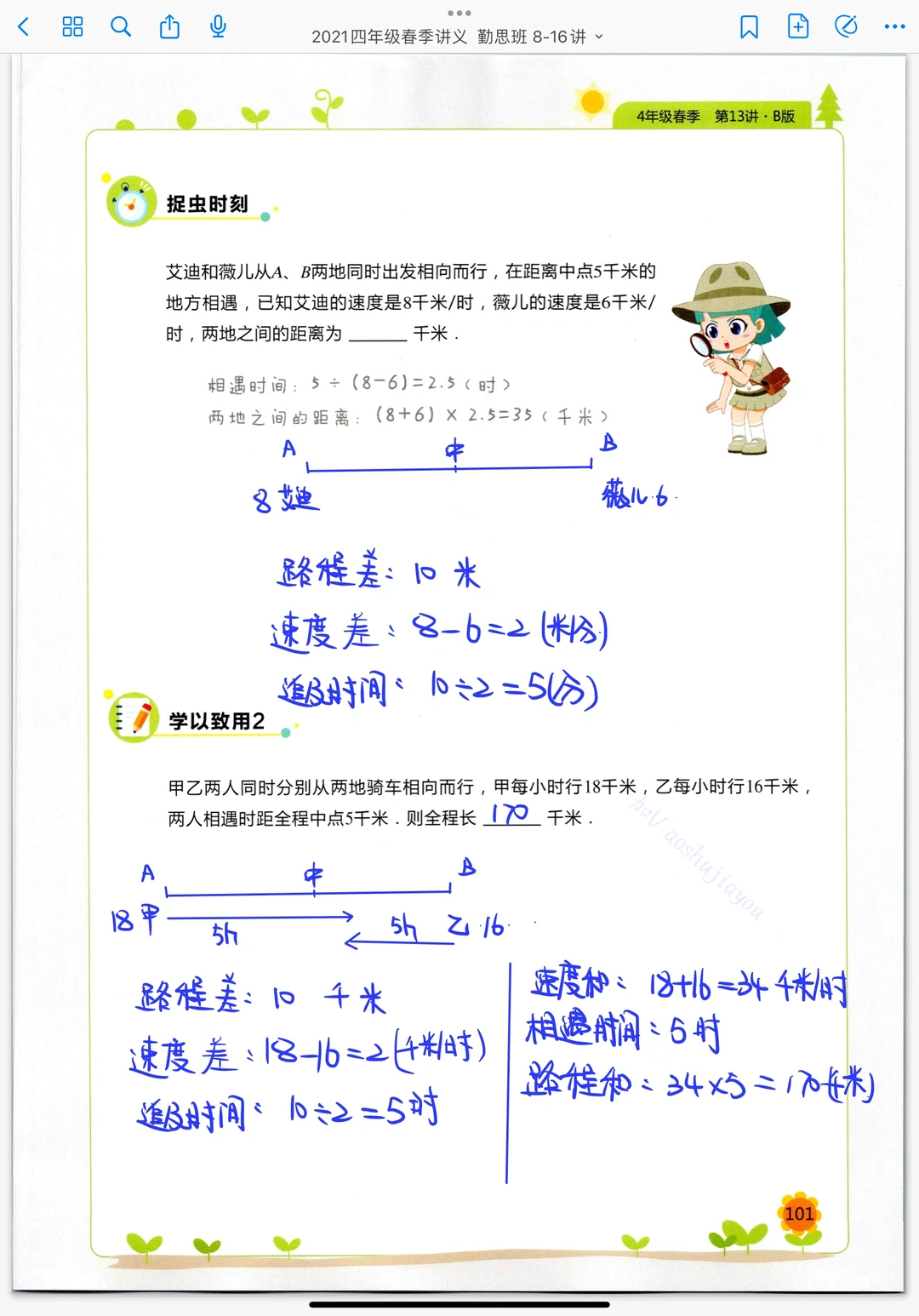 行程问题相遇追及小学奥数小学数学题数学思维小学数学公式 数学学习 数学 初中数学笔记 打卡一下 我的日常