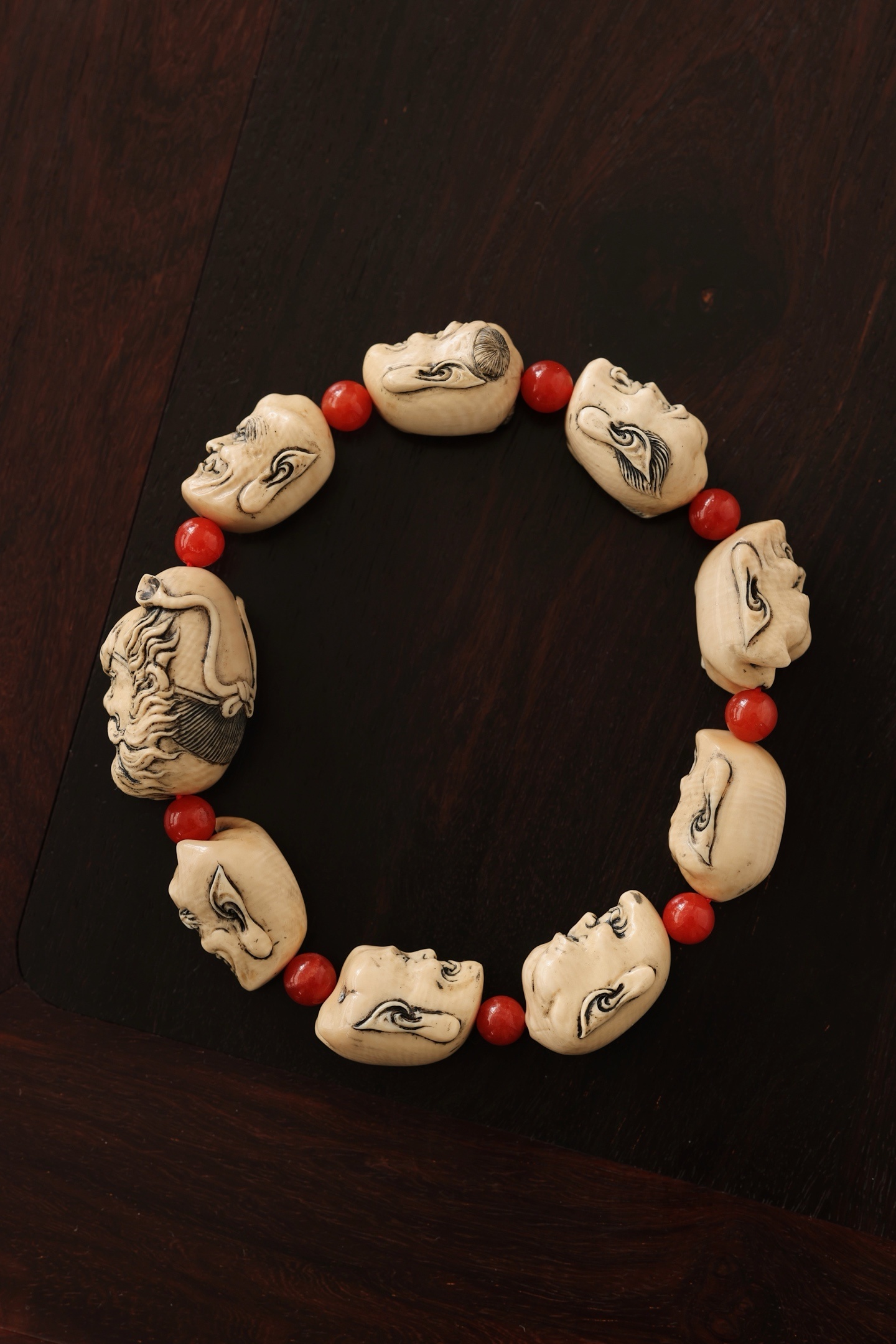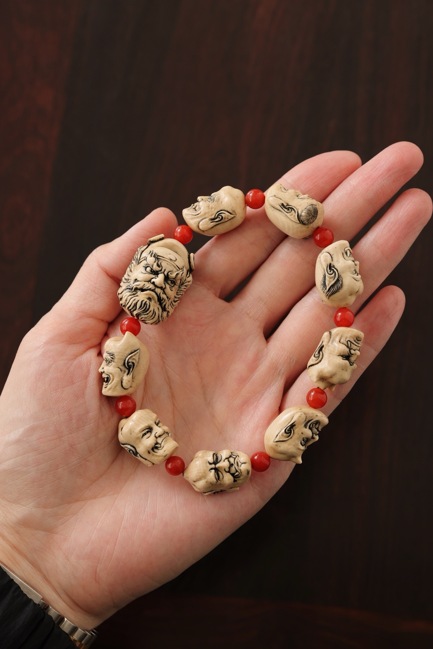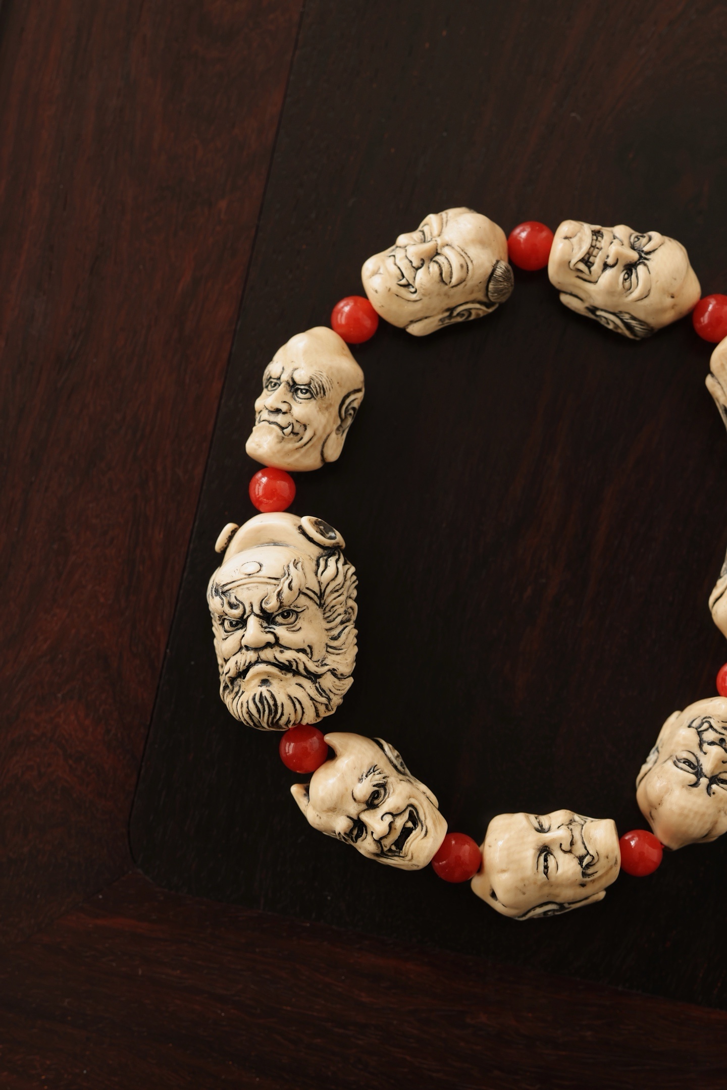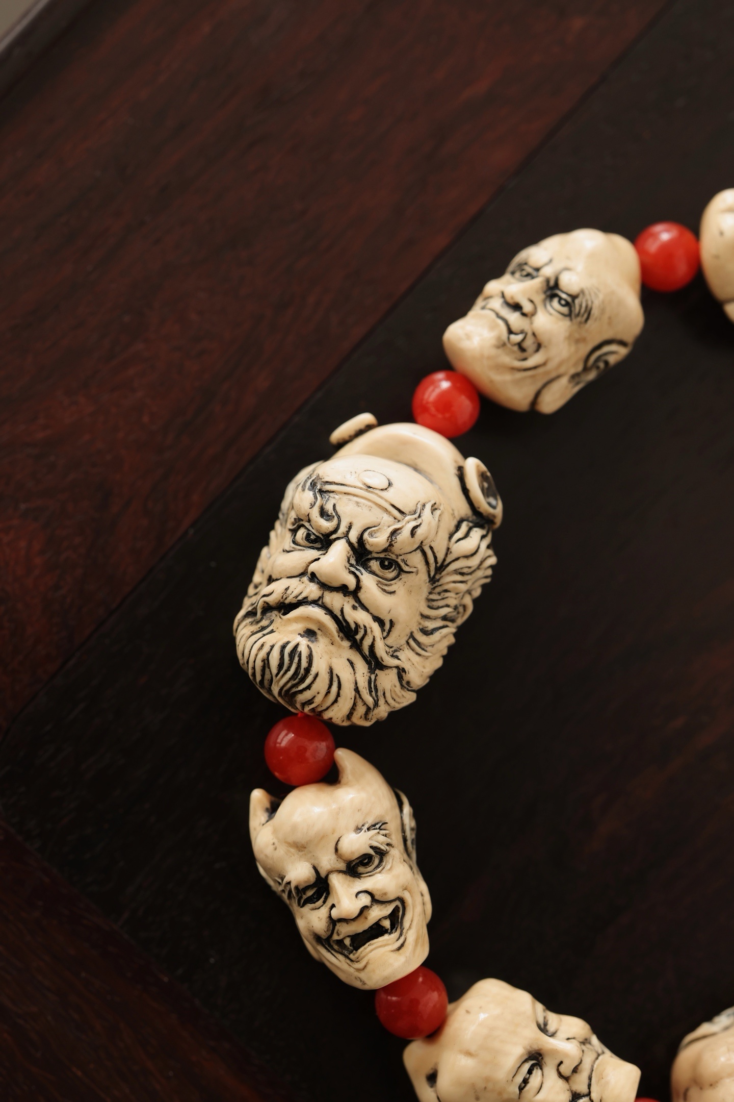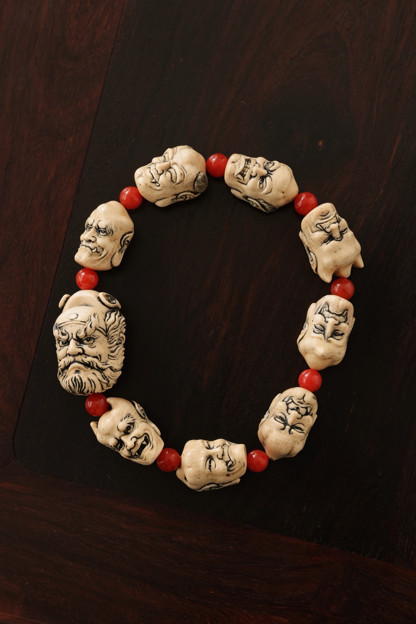 猛犸仿古 | 钟馗 手串雕刻韵味古朴,手感舒适,钟馗豹头环眼,铁面虬鬓,圆目怒张,眉高挑,小鬼各具情态,随身佩戴,除祟纳吉。钟馗20*20*28mm小鬼22*13*15mm 39g